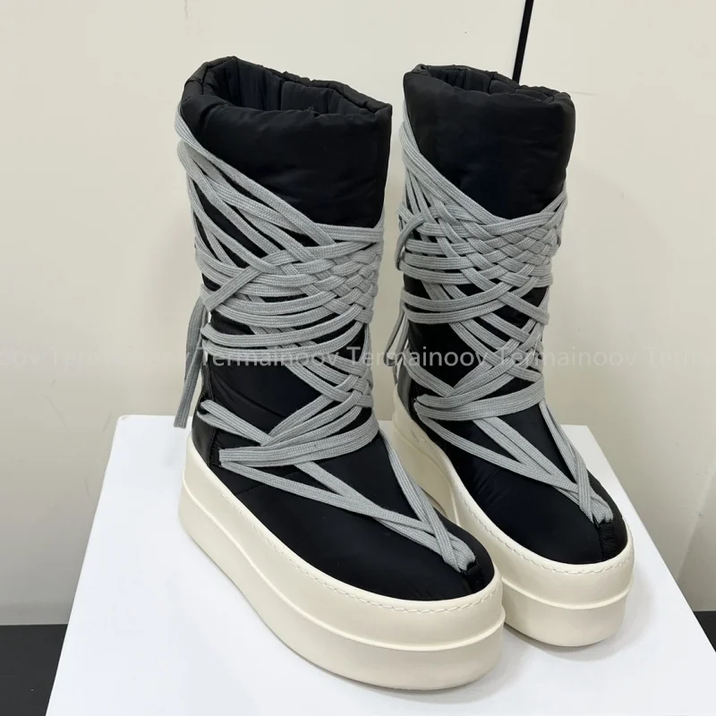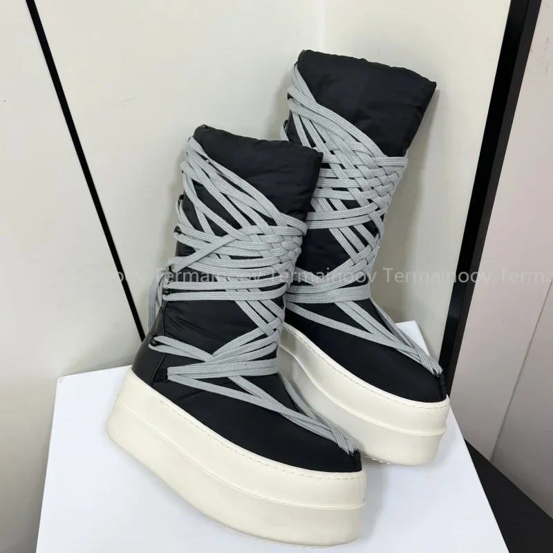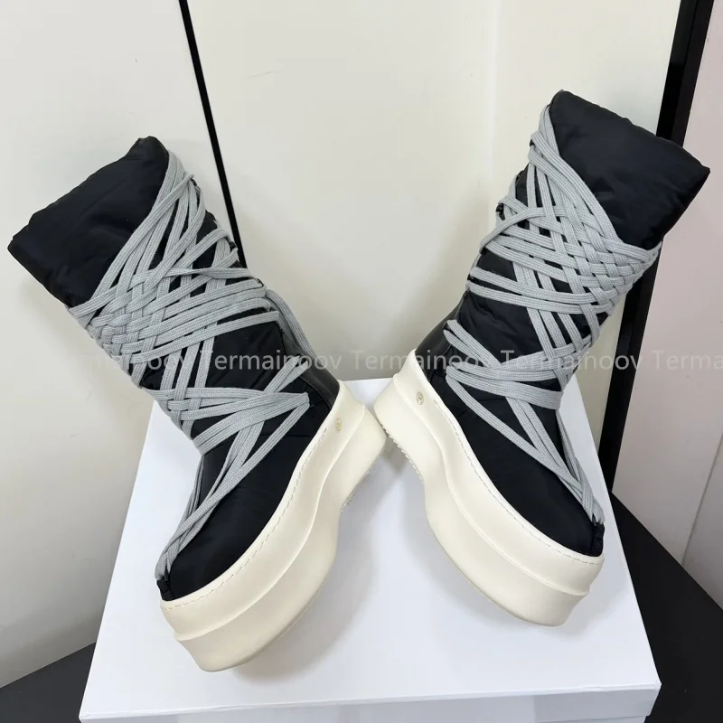 2025 New Men Boots Top Quality Platform Lace Up Winter Boot Size 35-46 Designer Fashion Women Knee High Platform Boots