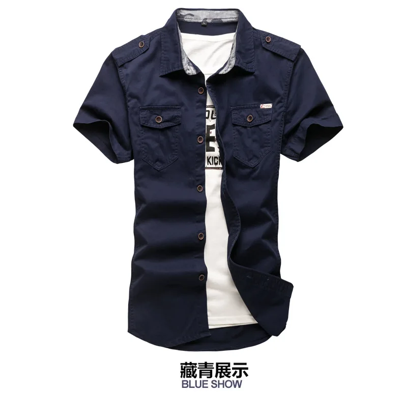 2025 New Men's Cargo Tactical Shirts 100% Cotton Short Sleeve Work Brand Military Shirt Chemise Plus size 5XL