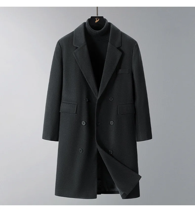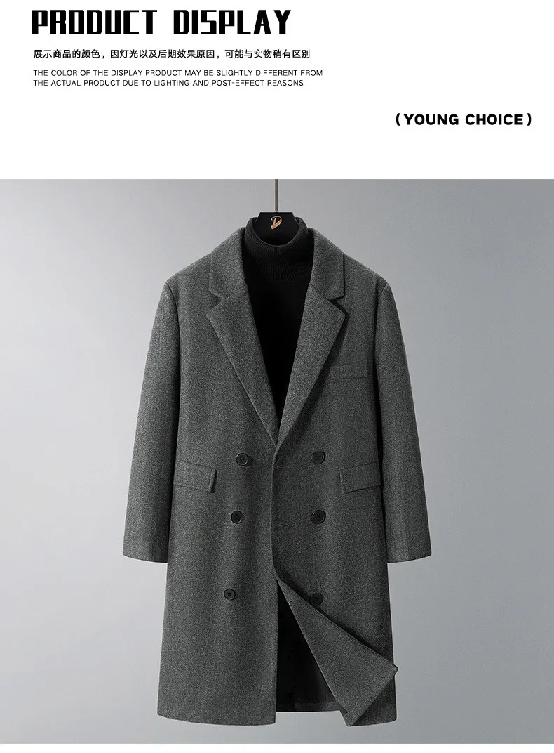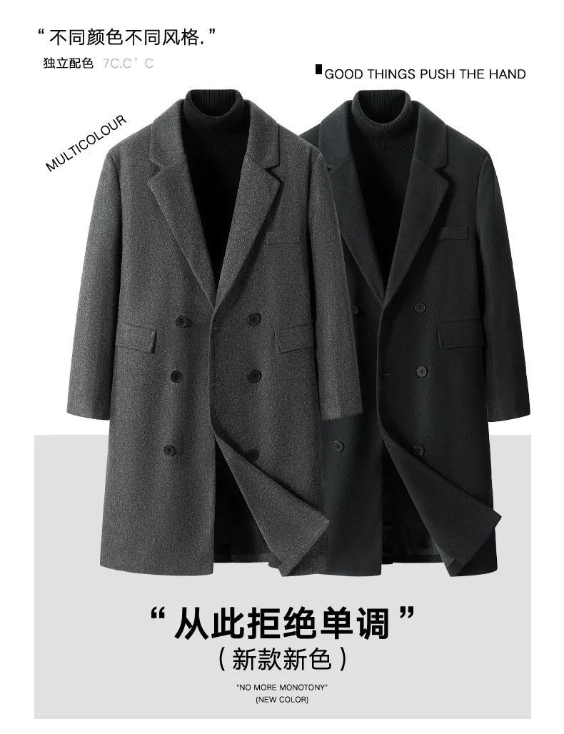 2025 New Men's Knee-Length Wool Blend Overcoat | Korean Style Loose Fit Trench Coat A/W Season | Plus Size Casual Fashion