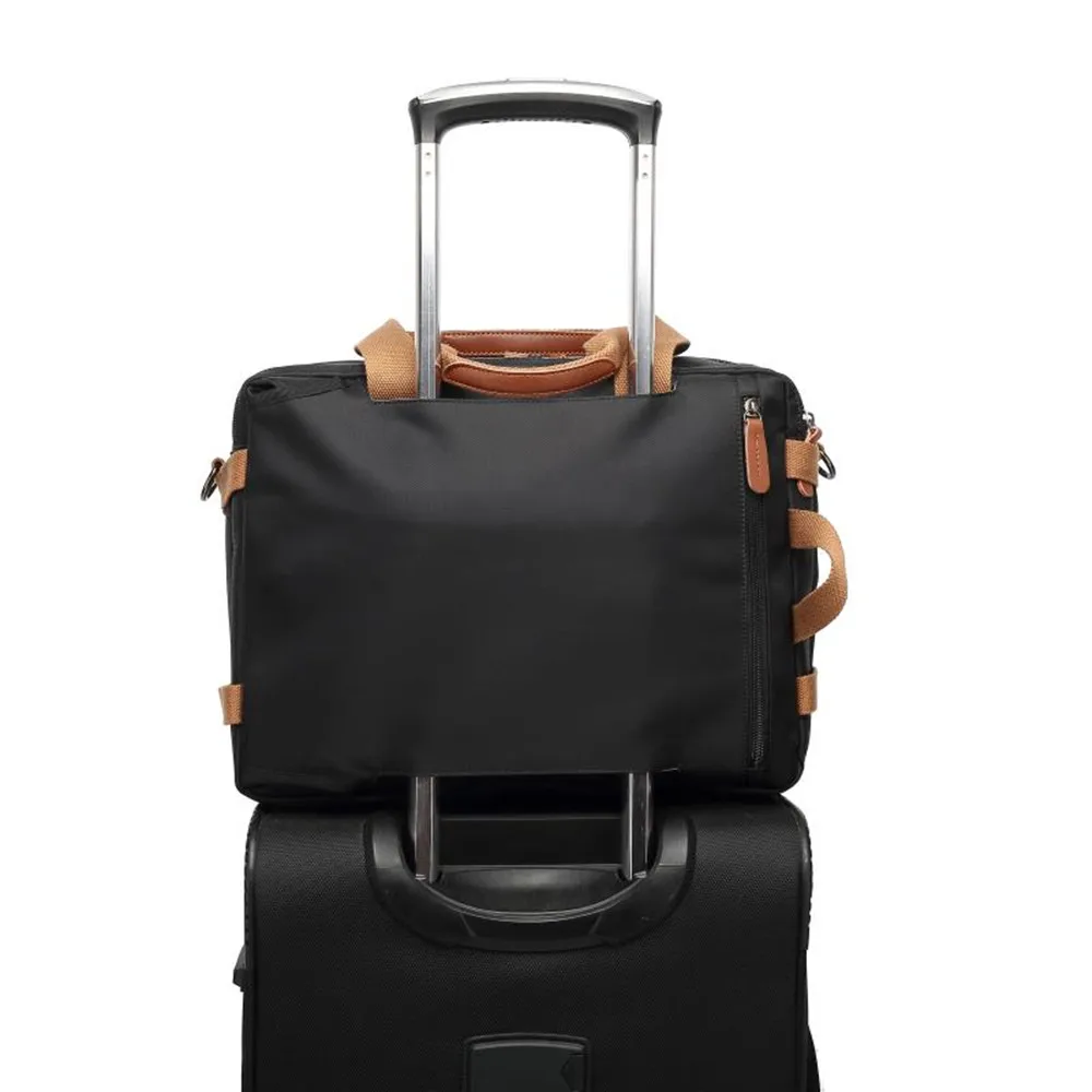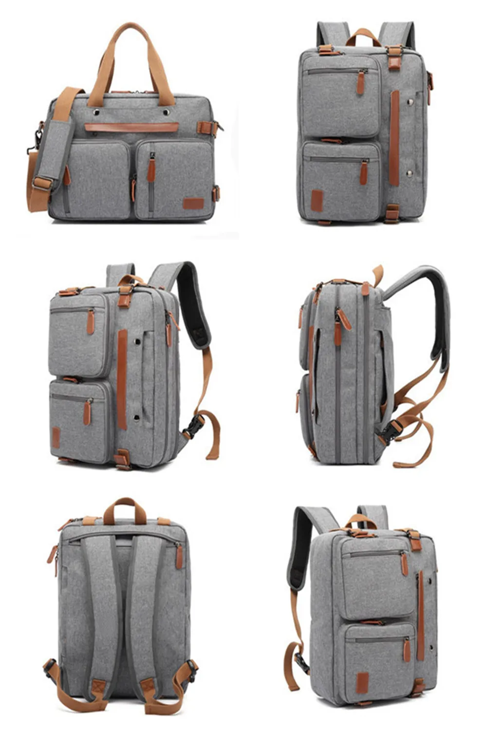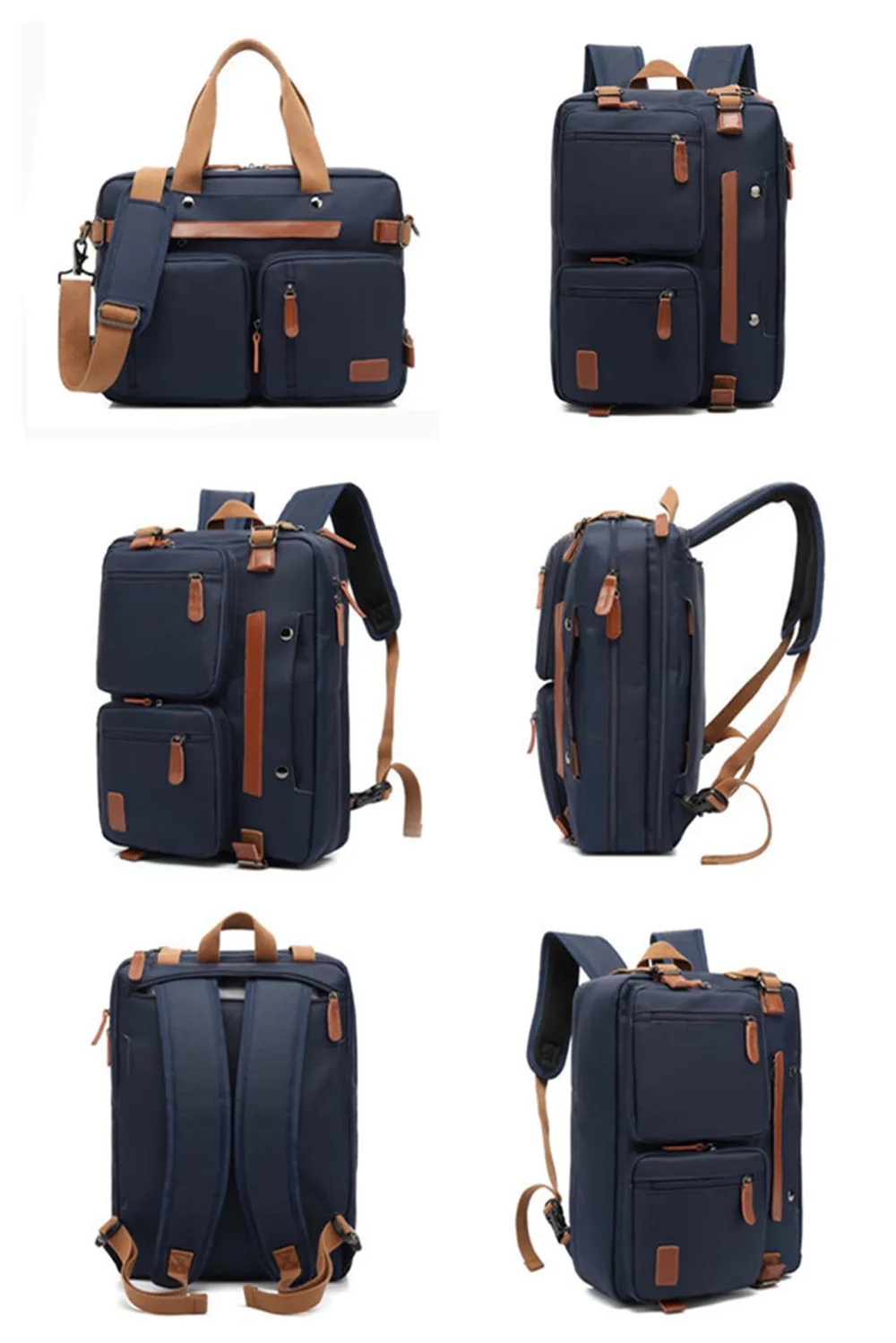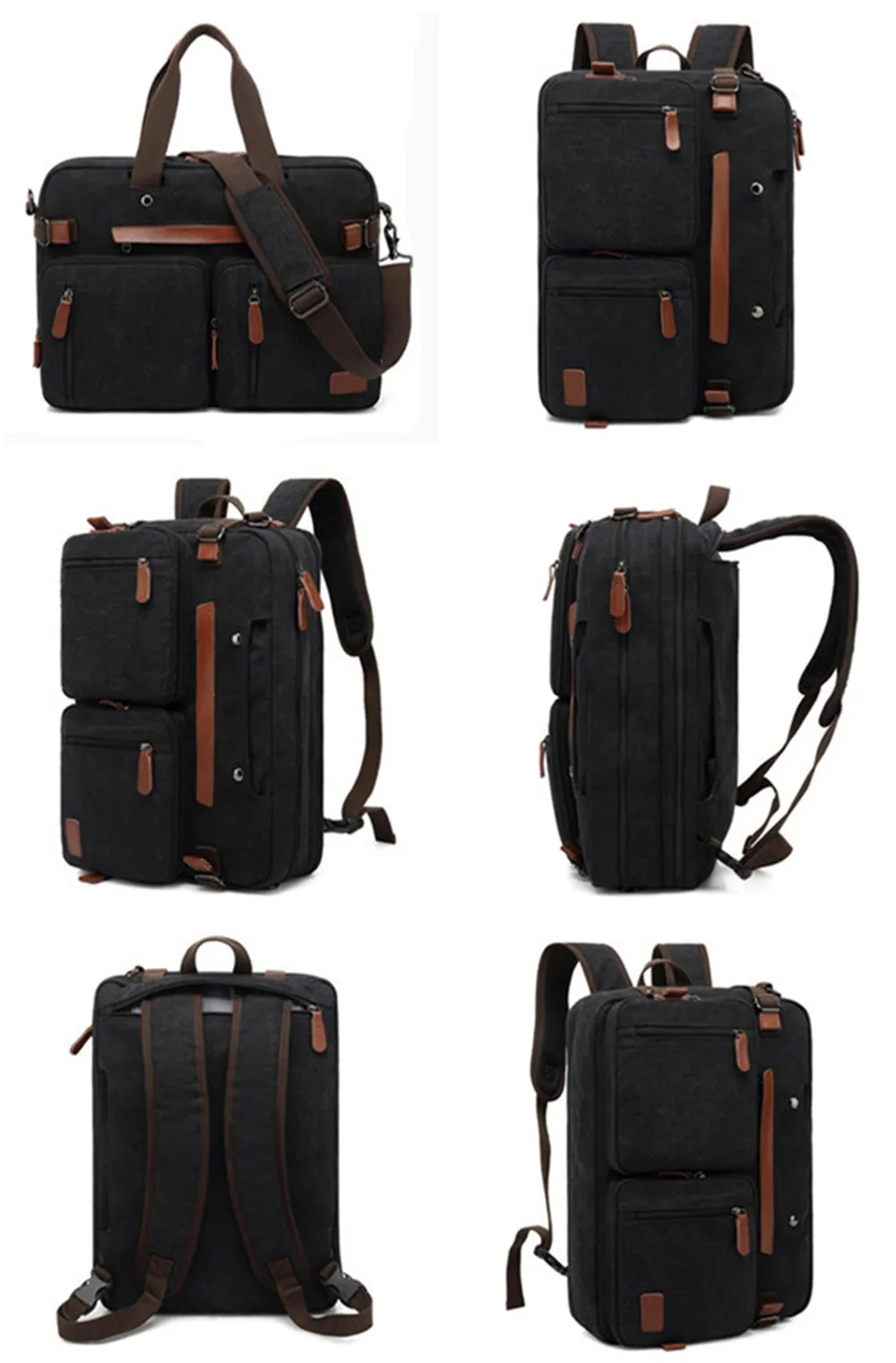 Convertible design. This bag can be easily converted to backpack, shoulder bag and briefcase.Removable shoulder strap is adjustable. The back strap can be hidden in a big back compartment when you use it as briefcase and shoulder bag.
