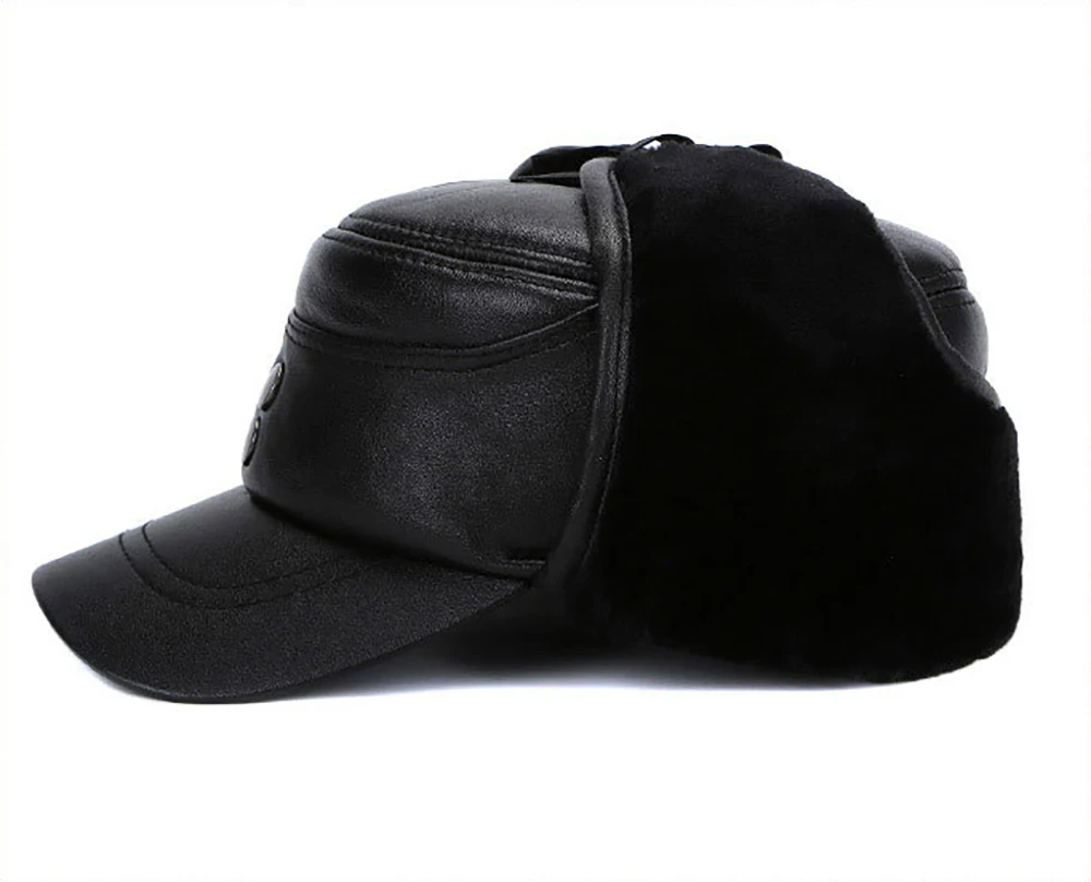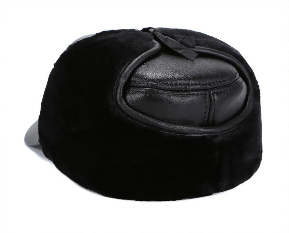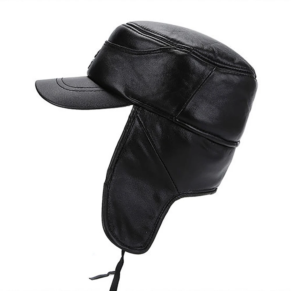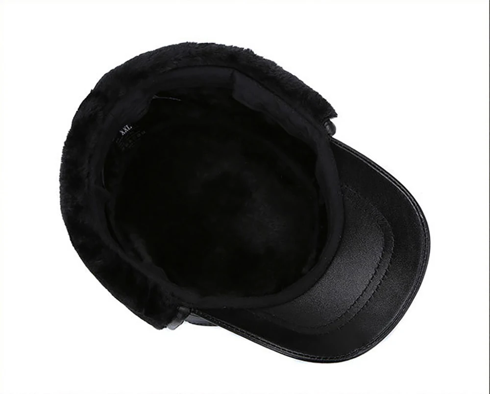 2025 New Style Men Ear Flap Genuine Leather Hat Winter Vintage Baseball Caps Thicken Warmer Flat Hats Fashion Real sheepskin Cap