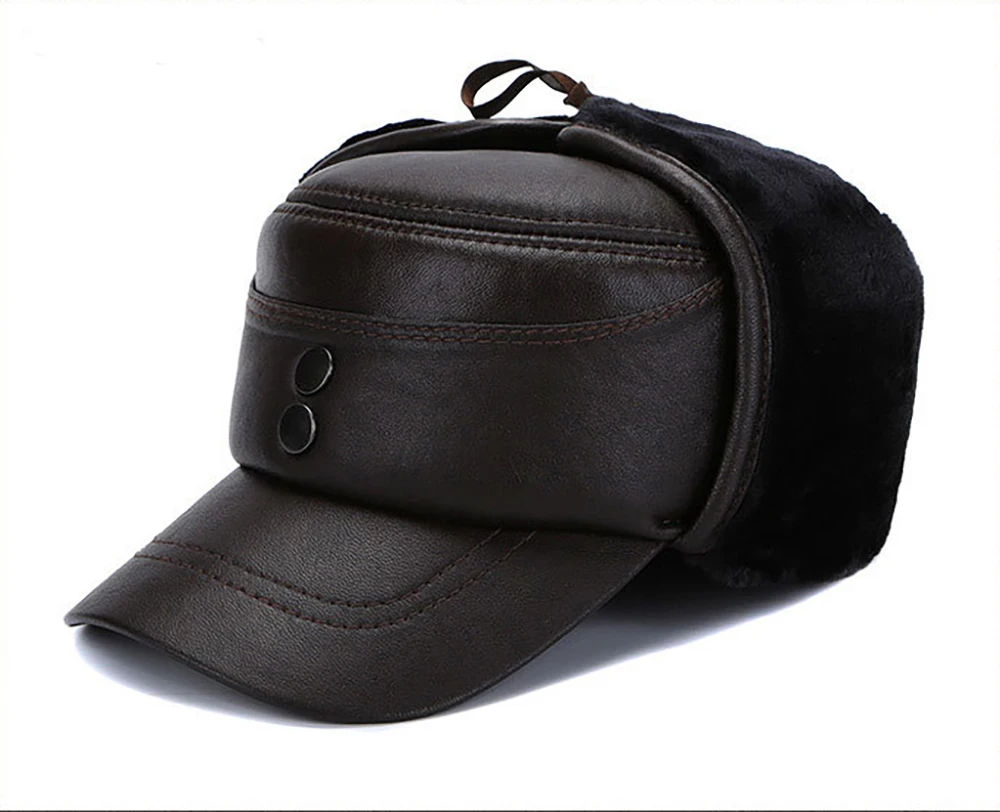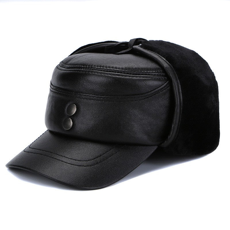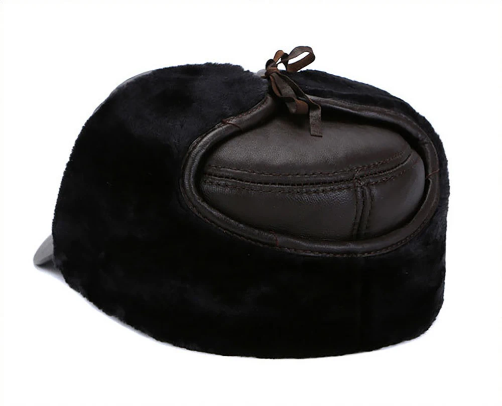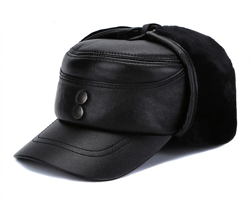 2025 New Style Men Ear Flap Genuine Leather Hat Winter Vintage Baseball Caps Thicken Warmer Flat Hats Fashion Real sheepskin Cap
