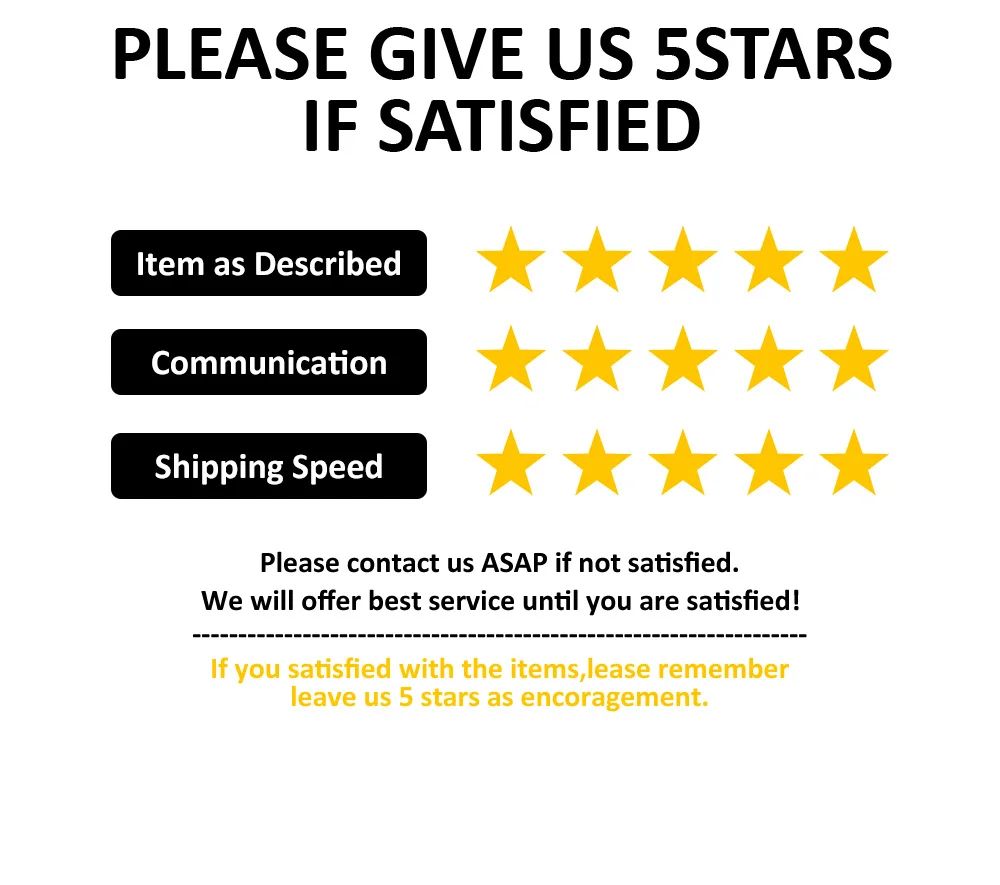 3.Your 5 stars feedback will be highly appreciated and it will encourage us to offer you more affordable and high quality clothes.