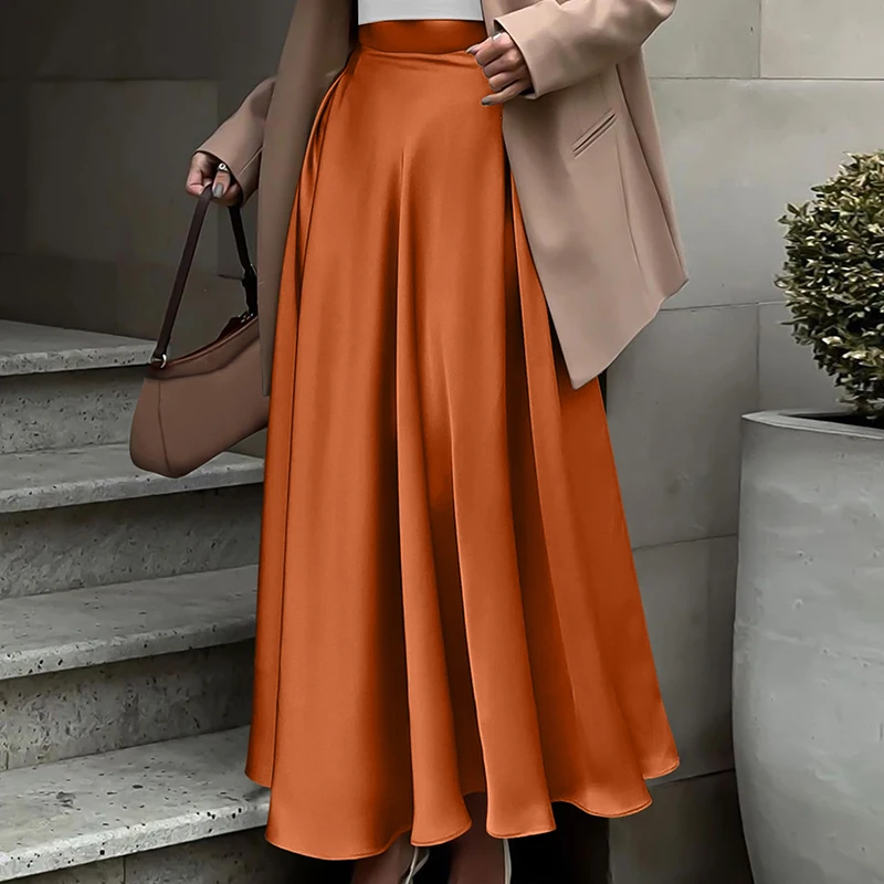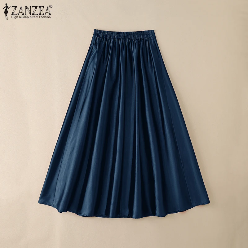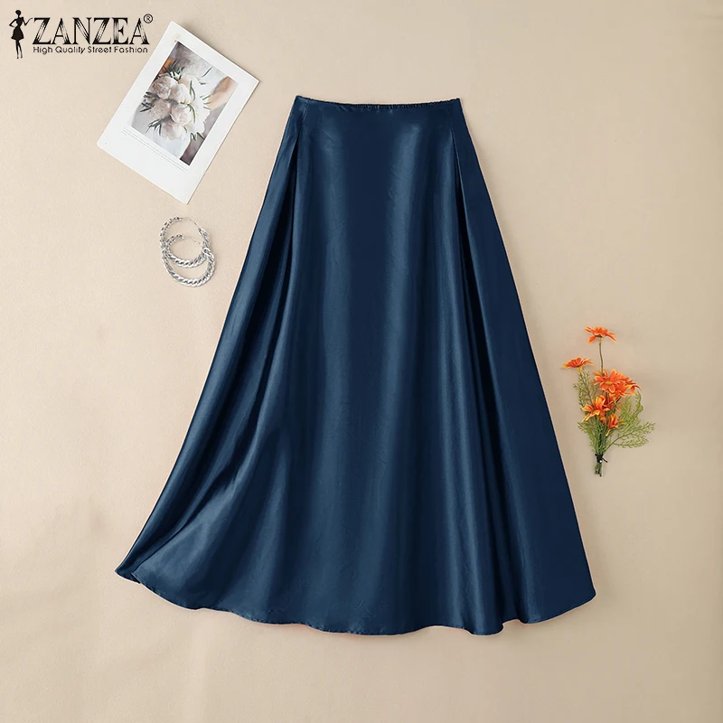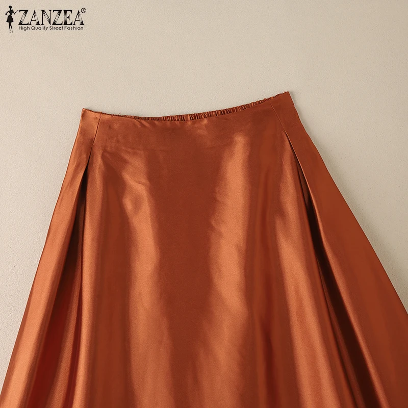 2025 Stylish Autumn High Waist Party Satin Skirts ZANZEA Women Jupe Plus Size Solid A-line OL Work Faldas Saia Maxi Long Skirt