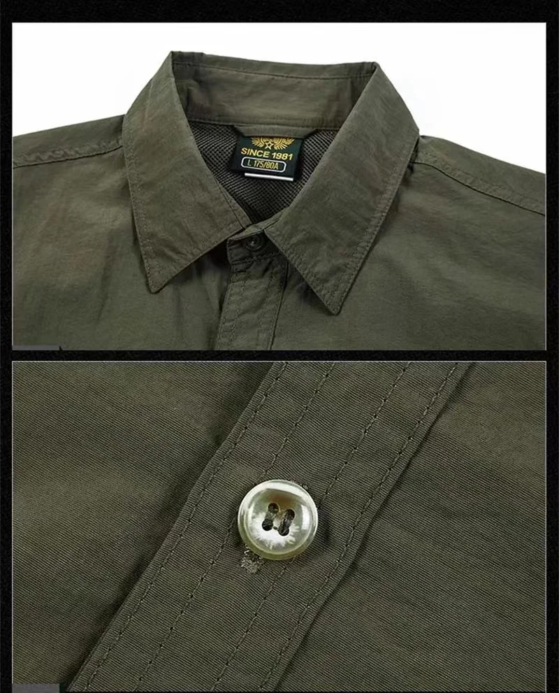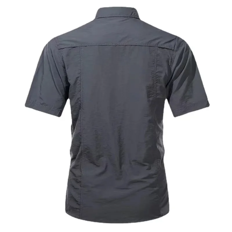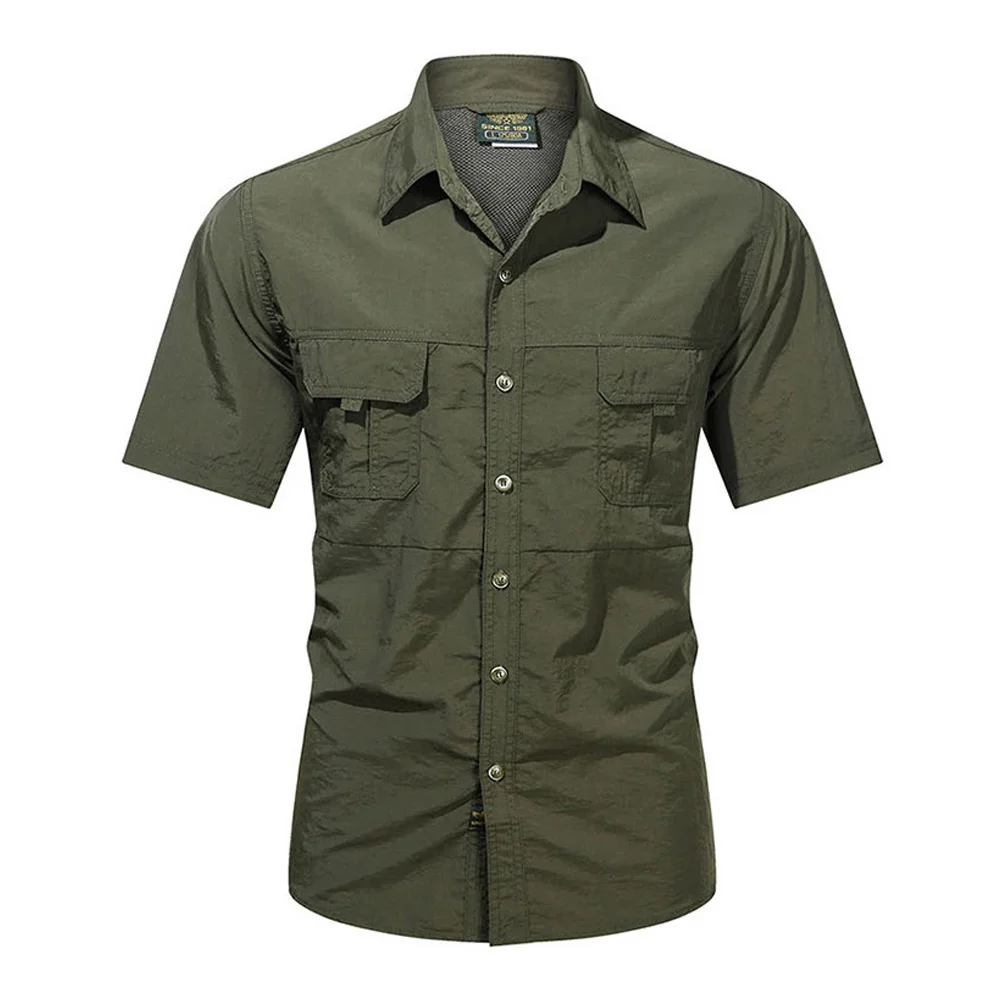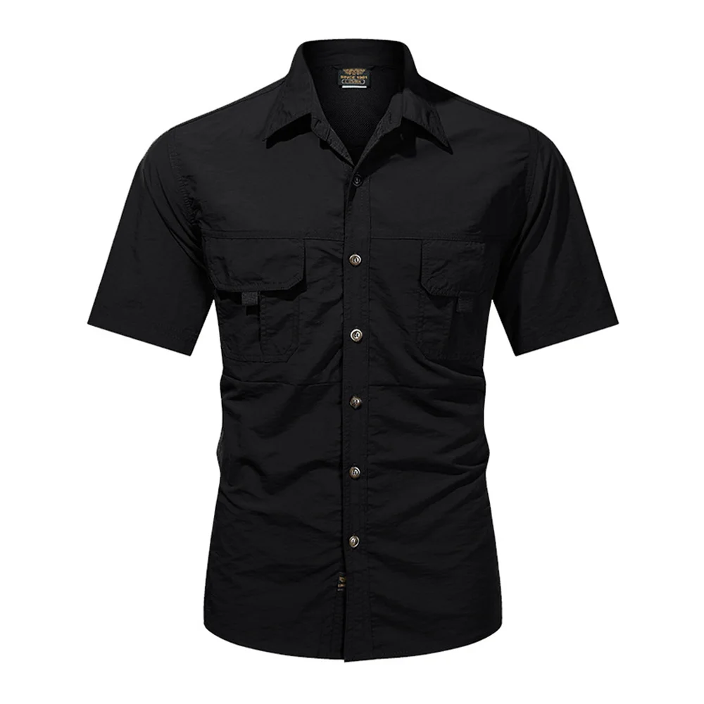 2025 Summer Cargo Shirts for Men Short Sleeve 2-Pocket Outdoor Casual Shirt Quick-dry Tops Lapel Single-Breasted Men's Shirts