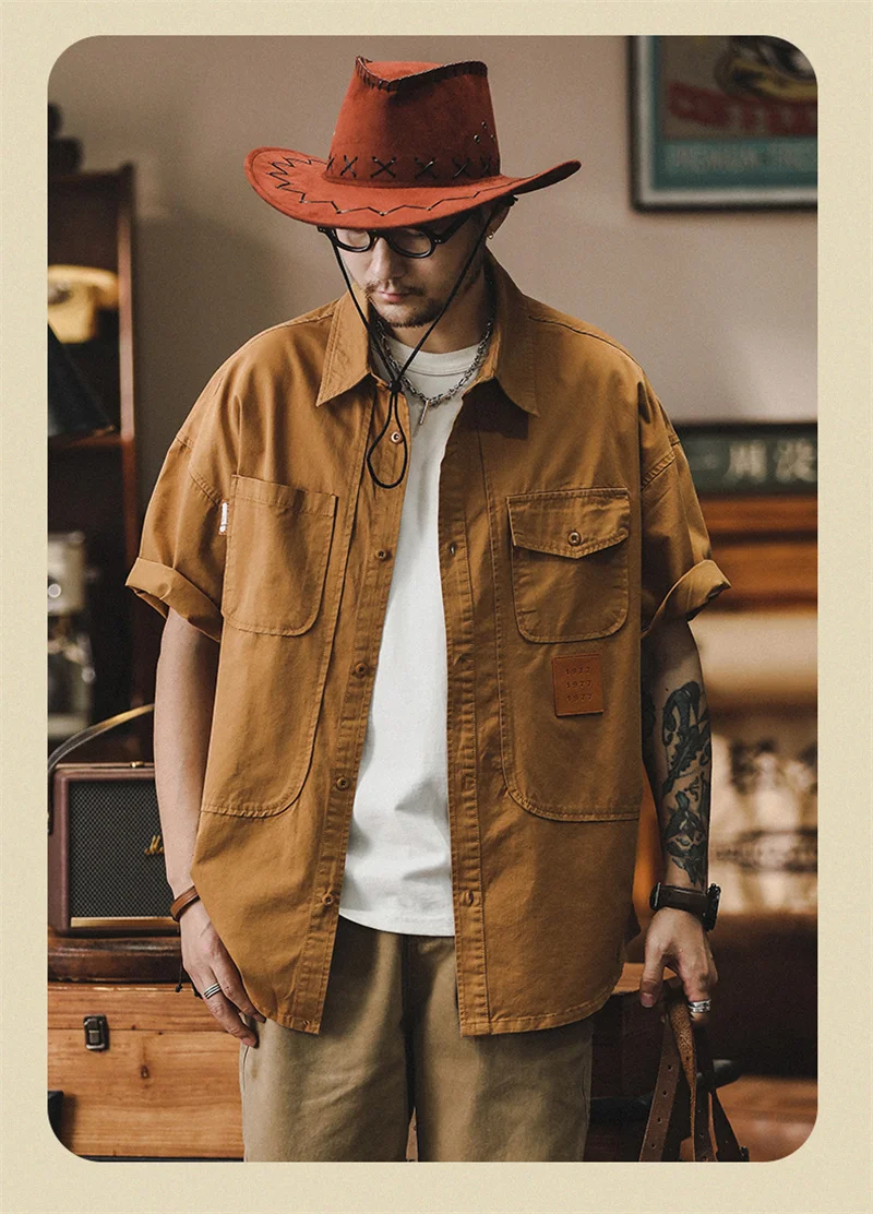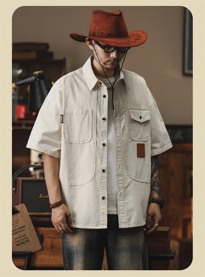 2025 Summer Men's Multi-pocket Oversized Short Sleeve Shirts High Street Fashion Cargo T-shirt New American Casual Y2K Shirt