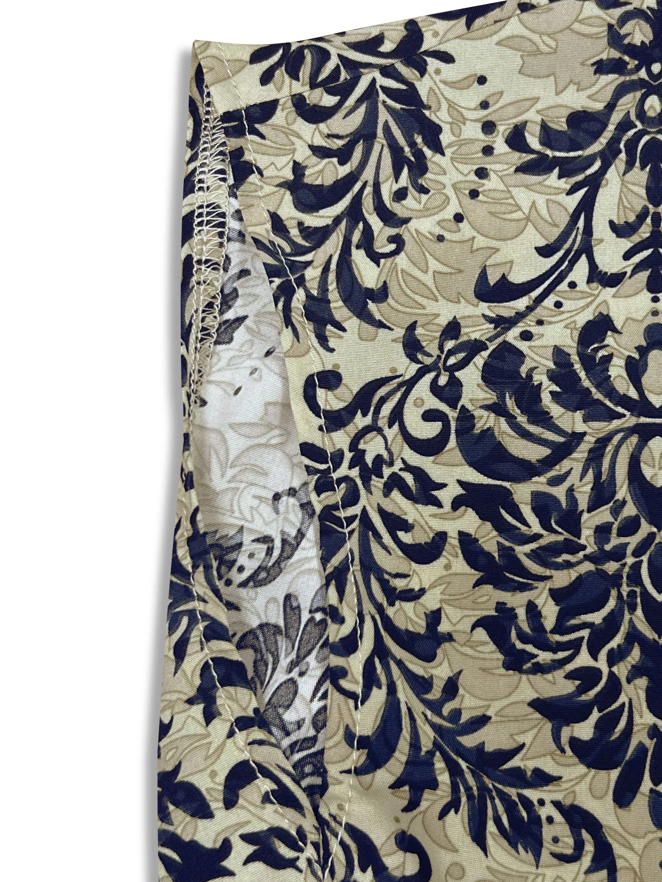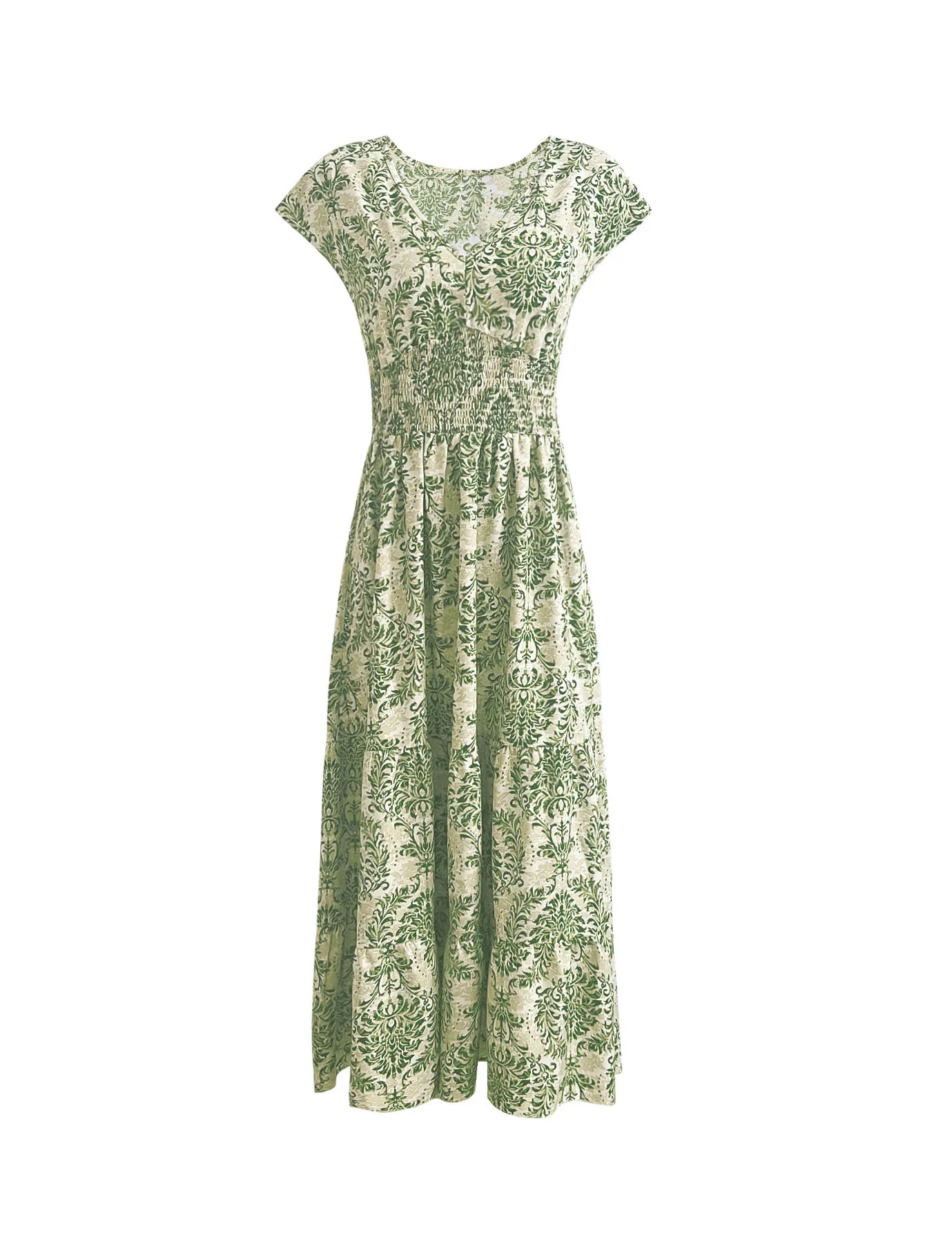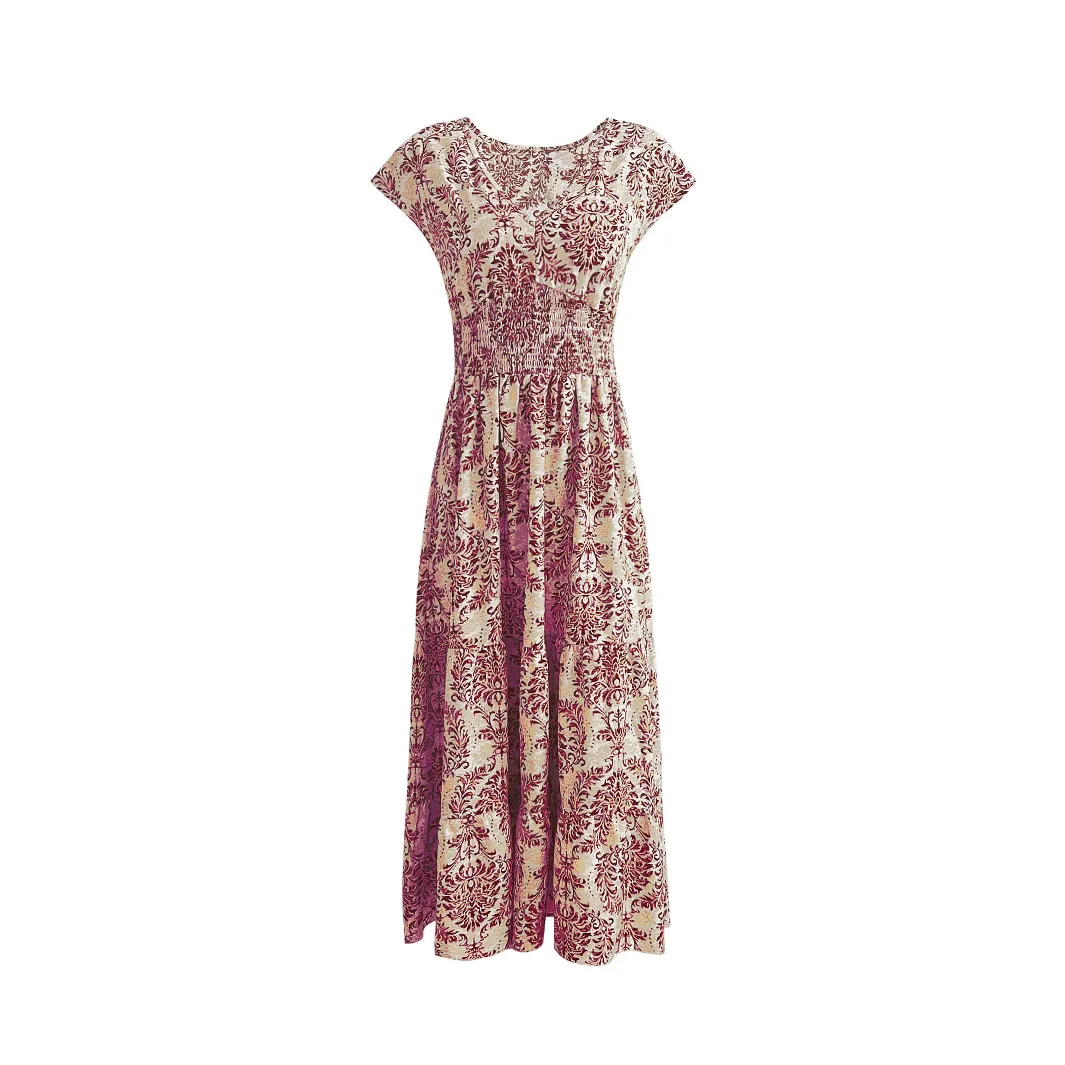 2025 vintage printed dress fashionable and elegant V-neck short sleeved jumpsuit long skirt women's clothing