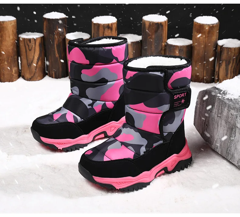 2025 Winter Children Shoes Plush Waterproof Fabric Non-Slip Girl Shoes Rubber Sole Snow Boots Fashion Warm Outdoor Boots