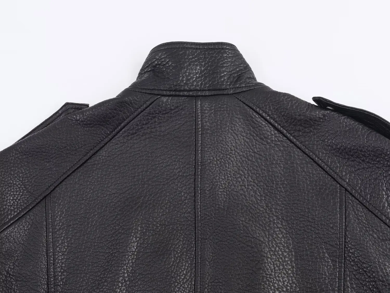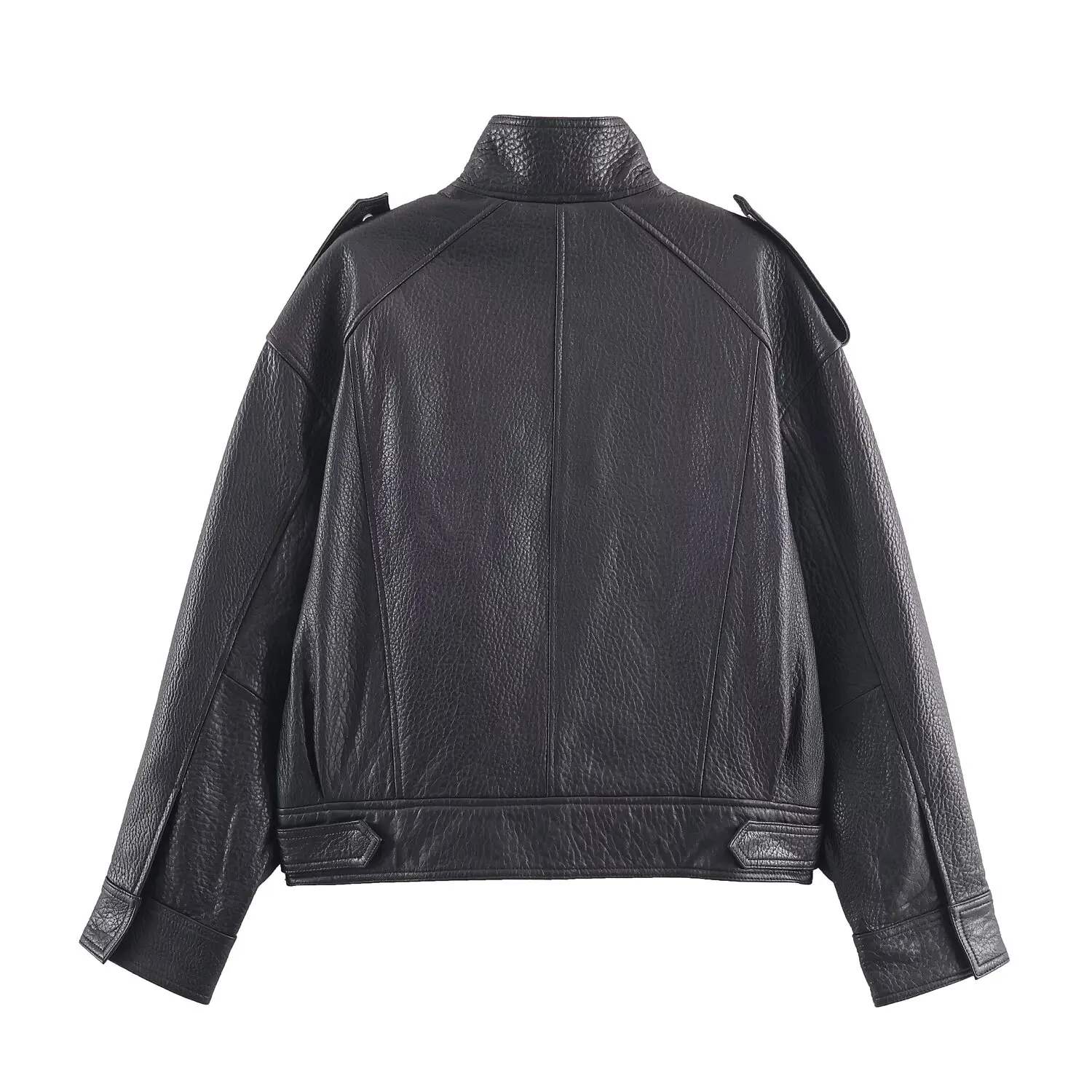 2025 WOMAN Fashion European and American Style Autumn Imitation Leather Jacket Long Sleeve Jacket Outerwear Mujer