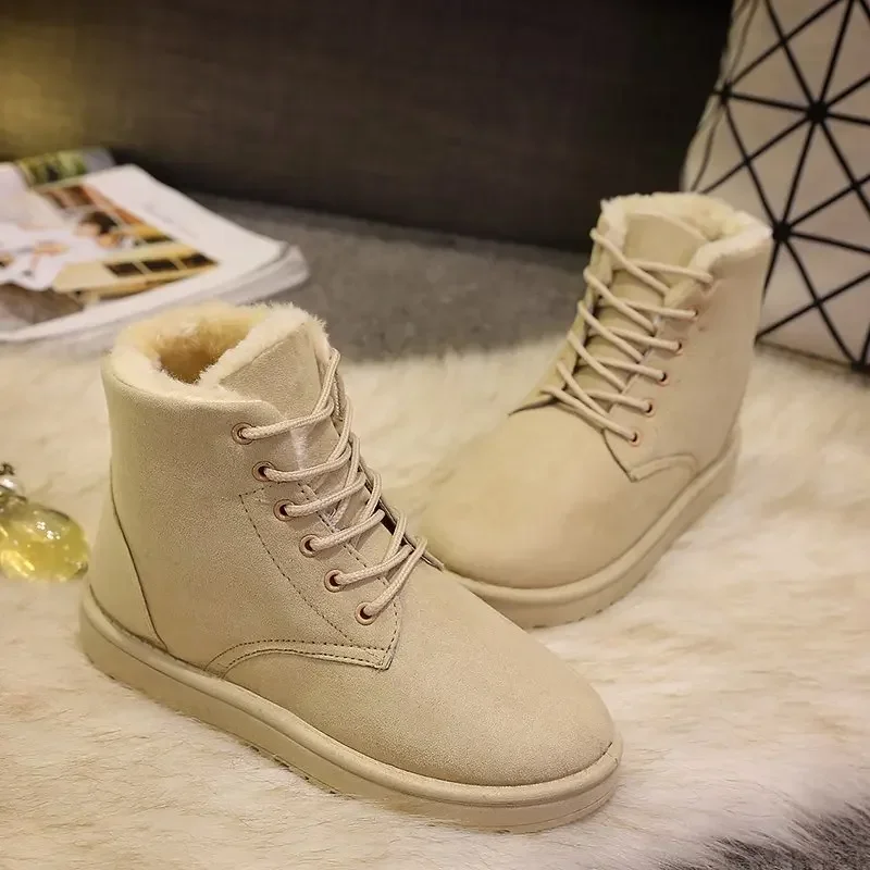 2025 Women Winter Snow Boots Warm Flat Plus Size Platform Lace Up Ladies Women's Shoes New Flock Fur Suede Ankle Boots 36-42