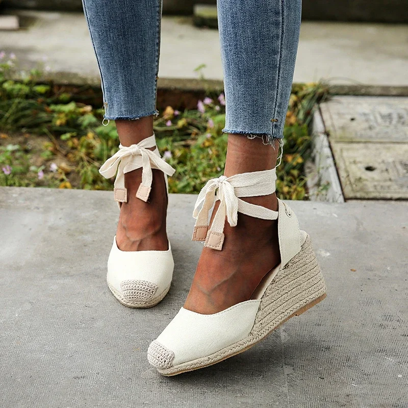 2025 Women's Espadrille Ankle Strap Sandals Comfortable Slippers Ladies Womens Casual Shoes Breathable Flax Hemp Canvas Pumps