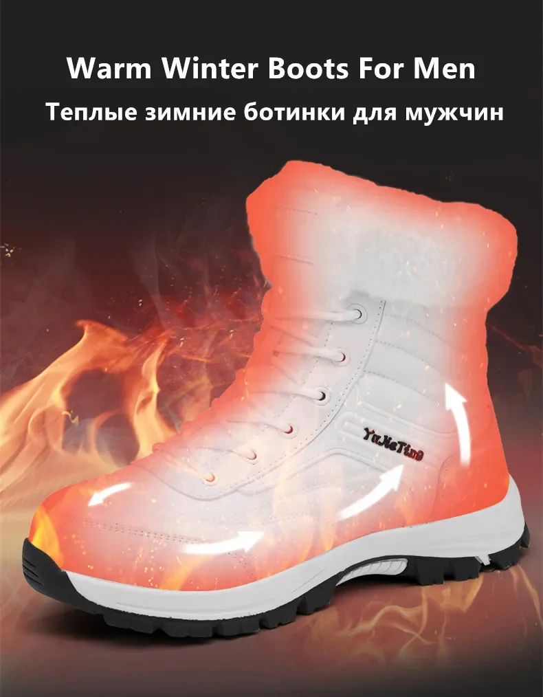 2025Brand Warm Winter Men's Hiking Boots Outdoor Snow Men Boots Men Work Casual Sneakers High Top Keep Warm Non-slip Ankle Boots