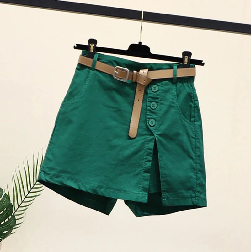 2026 Chic Shorts Women Korean Solid Buttons Side Slit A-line Streetwear Fashion Skirts Chic Harajuku Summer Loose Pants