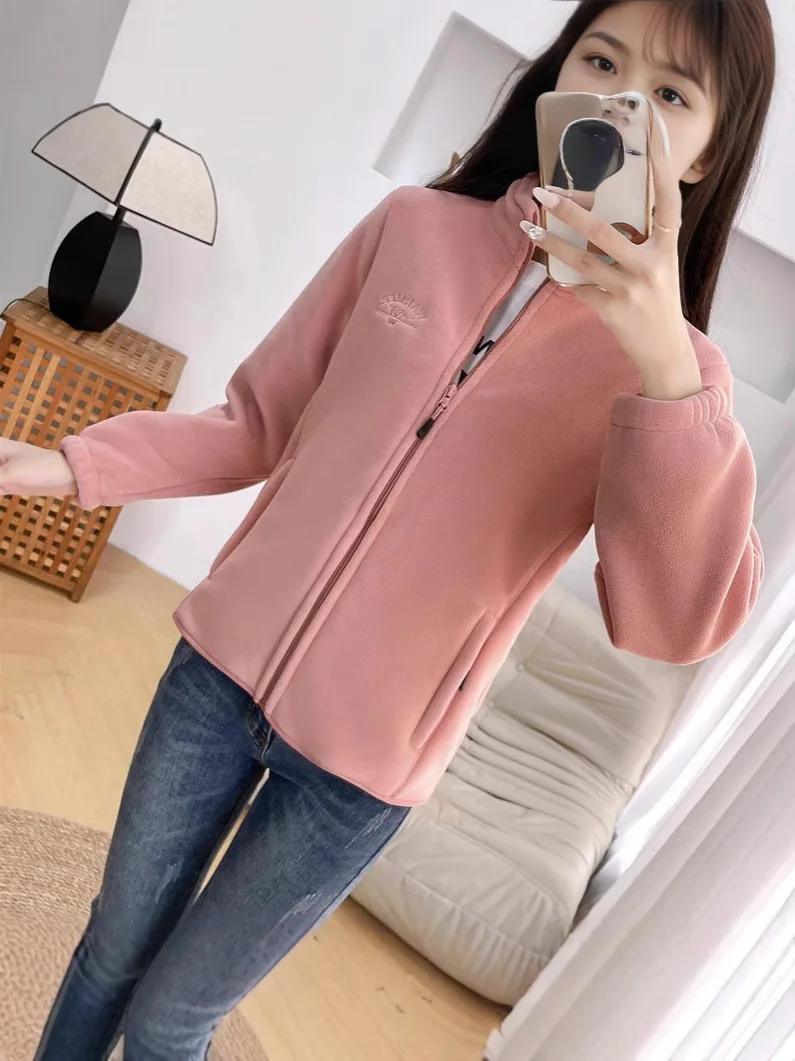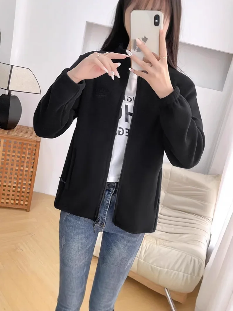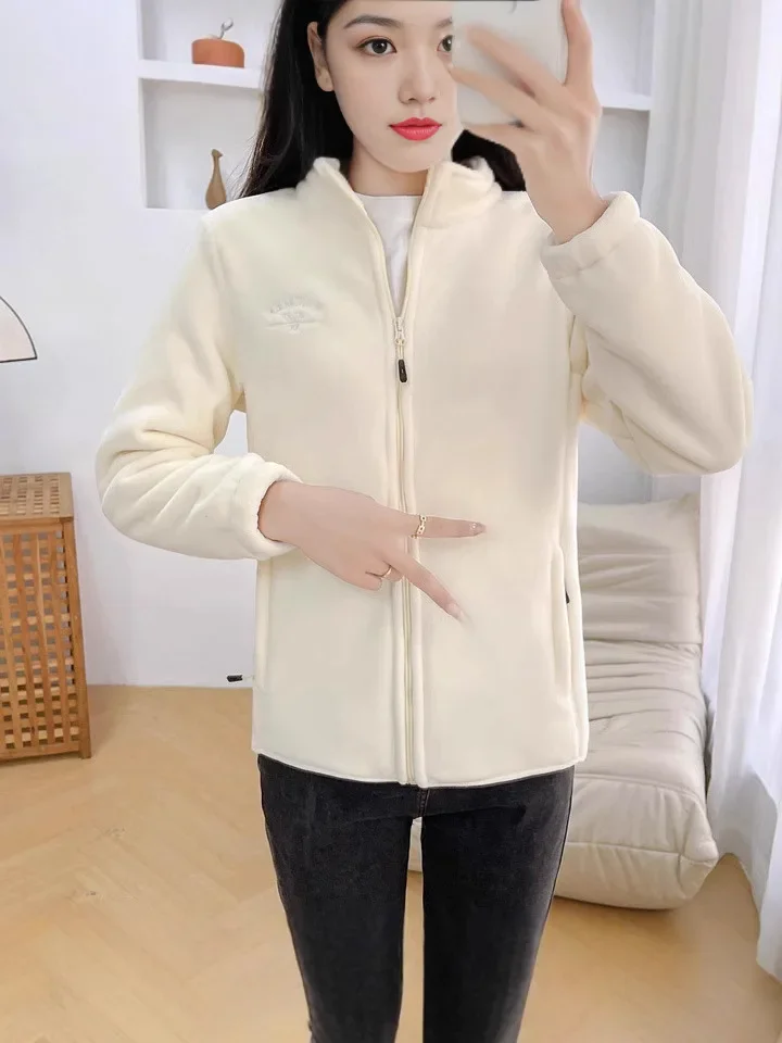 2026 Women's Wool Liner Coat Winter Loose-Fit Full Sleeve Polar Fleece Zipper Letter print Thickened Coat Cardigan Sporty jacket
