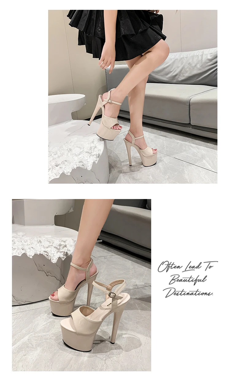 20CM 17 15cm Super High Heeled Nightclub Thin Heels Women's Platform Sandals Ankle Buckle Fashion Pole Dancing Shoes Plus Size