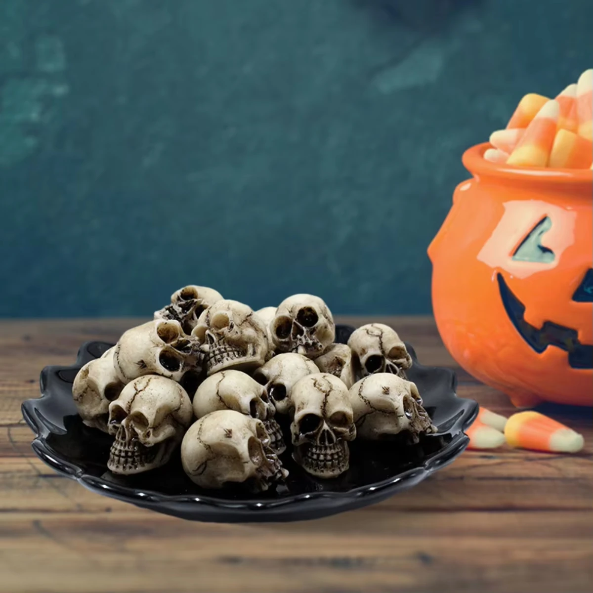 20Pcs Mini Skull Model Collectable Halloween Gothic Skull Sculptures Creative Festival Theme Landscape Garden Potted Plant Decor