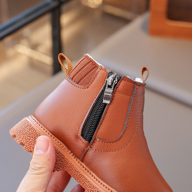 21-30 Kids Ankle Boots for Little Boys Girls Thermal Snow Boots Fashion PU Leather Children Short Rubber Boots with Thick Plush