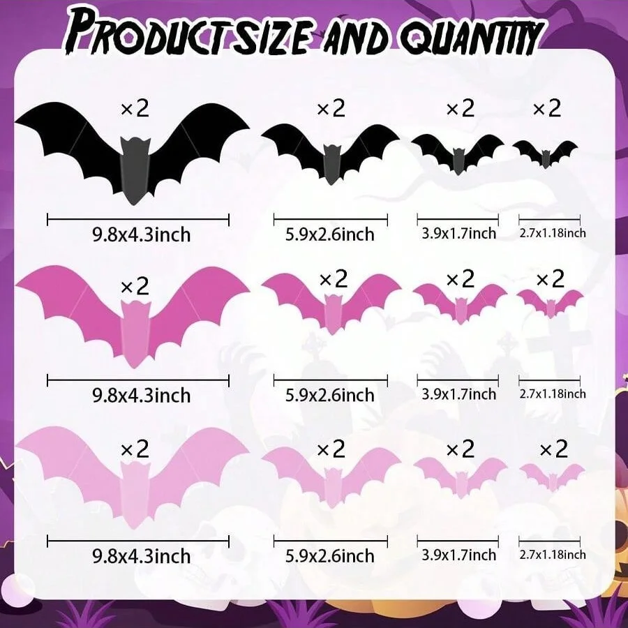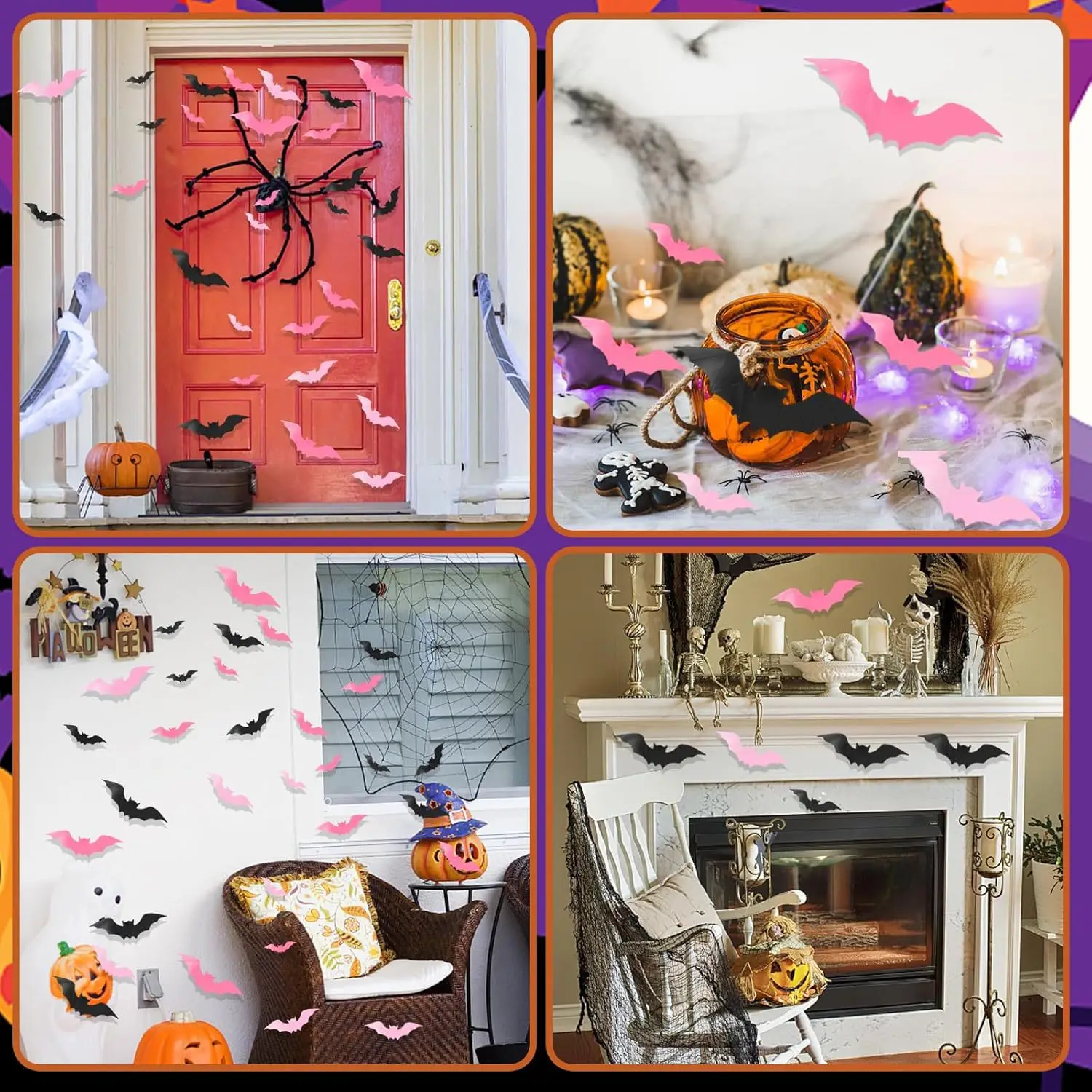 24/48pcs 3D Bat Wall Stickers Spooky PVC Bat Halloween Indoor Decorations Reusable Durable Bats Sticker Party Festival Supplies