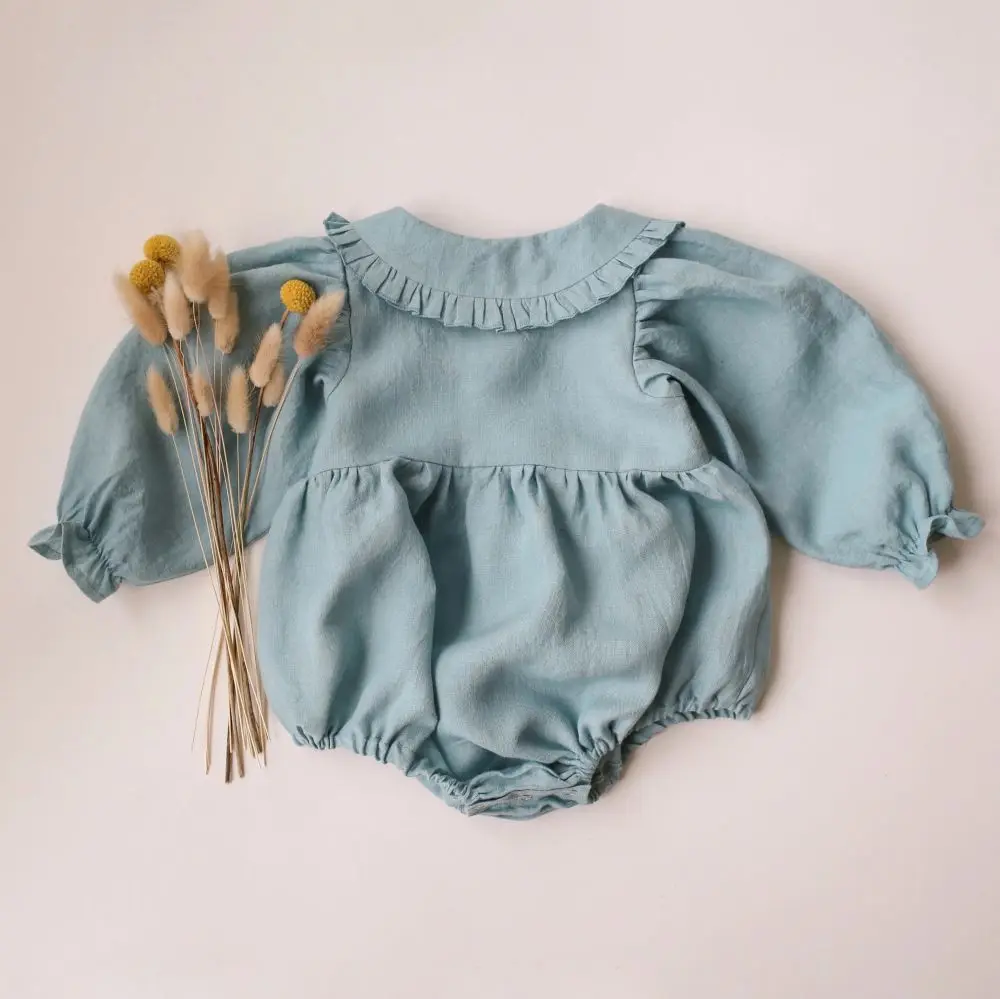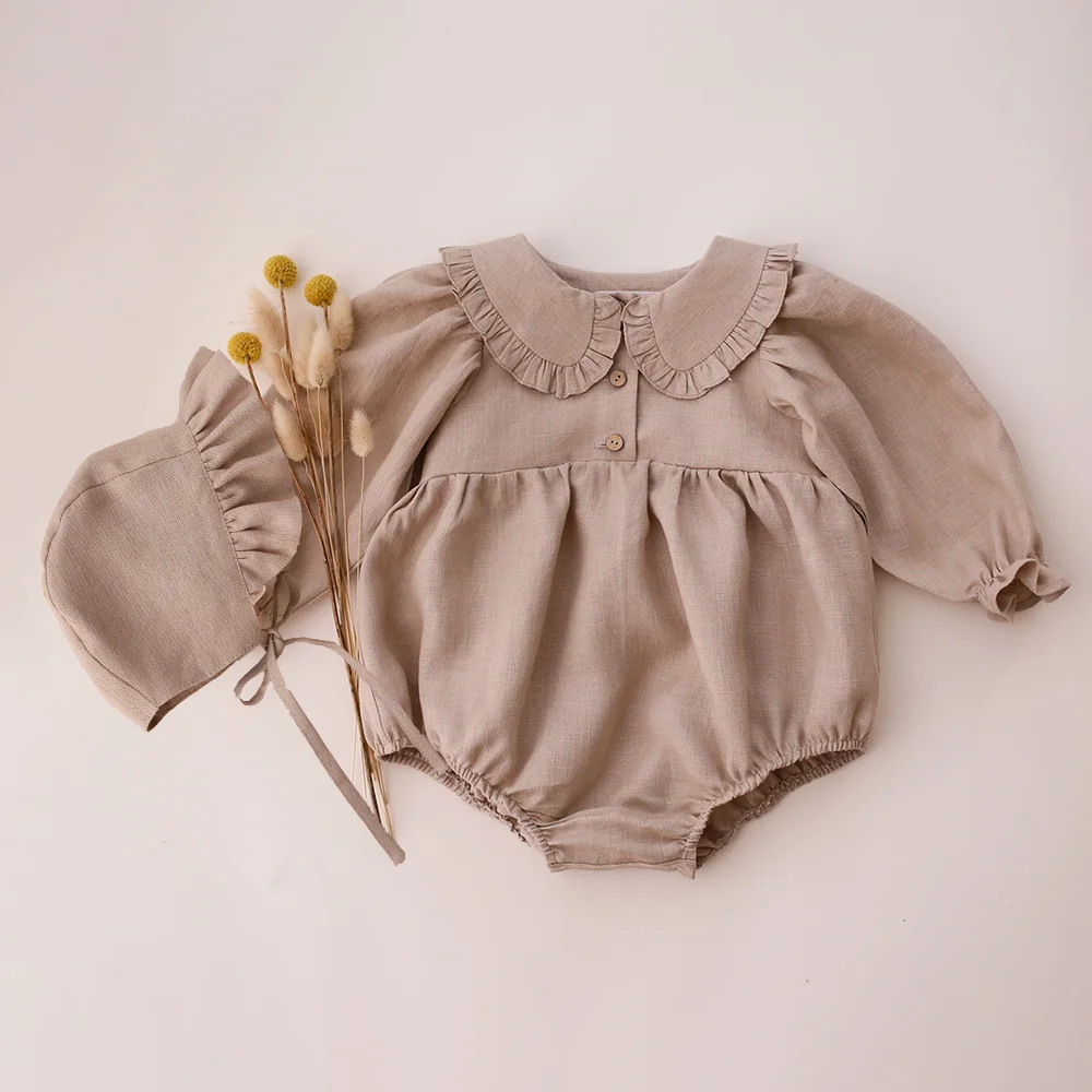 2Pcs Spring Baby Girls Playsuit With Hat Long Sleeves Newborn Romper Cotton Linen Fabric Infant Clothes