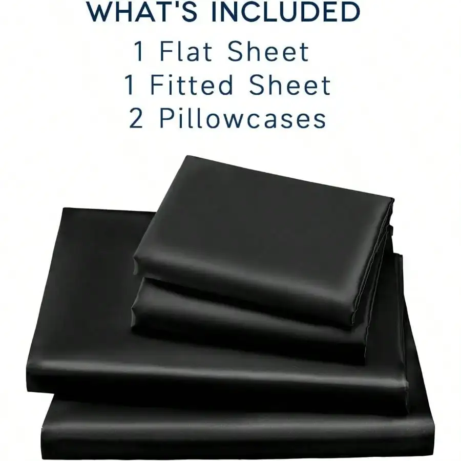 Package Includes: Our queen satin sheets set is made from premium polyester satin for a luxurious feel. It includes 2 pillowcases (20" x 30"), a flat sheet (90" x 102"), and a fitted sheet (60" x 80") with full elastic and deep pockets for mattresses up to 16". Enjoy soft, skin-friendly comfort that enhances your bedroom decor.