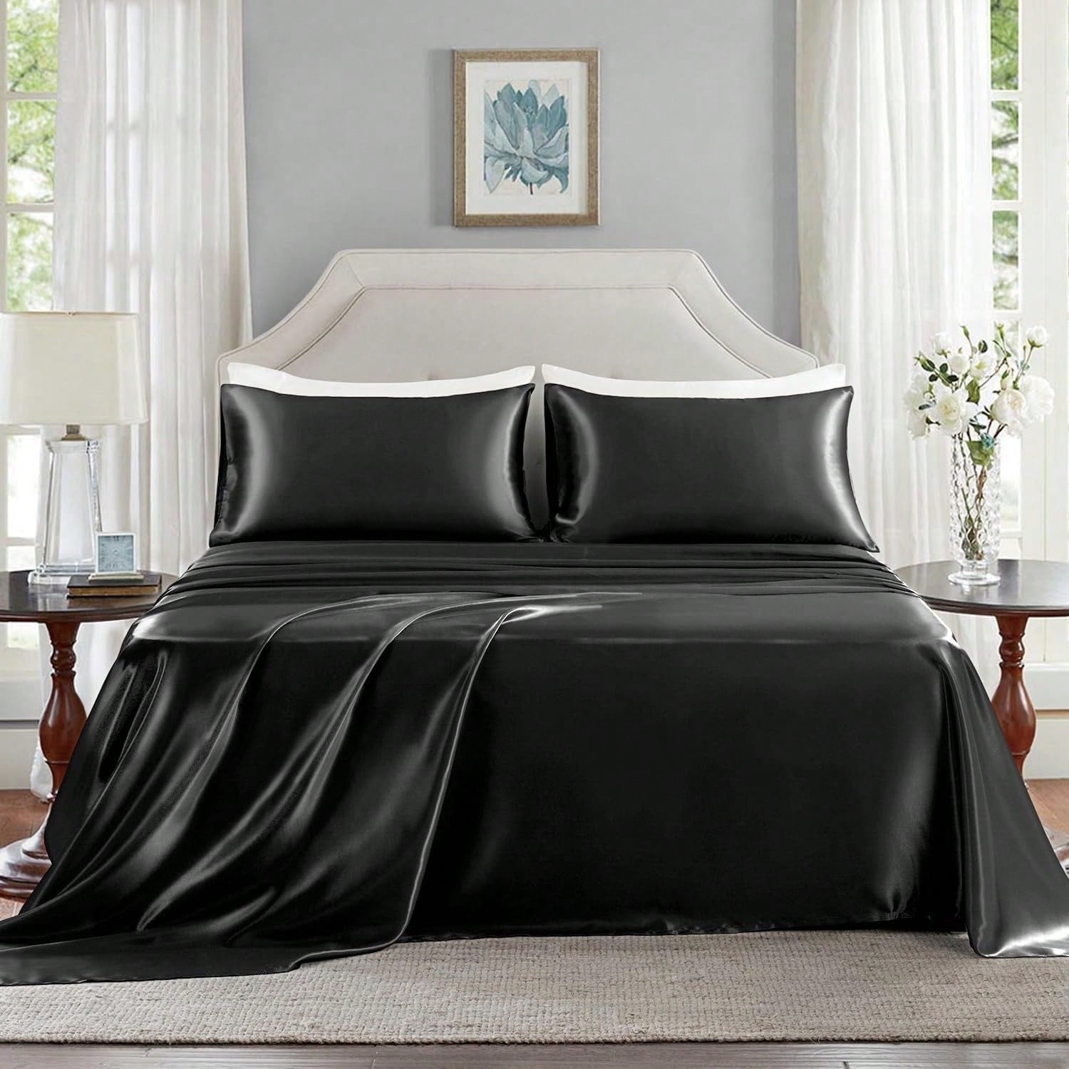 3/4Pcs Satin Sheet Se Silky & Luxury Bed Set, Soft Deep Pocket Sheets Cooling Bed Set, 1 Fitted Sheet,1 Flat Sheet,1/2Pillowcase
