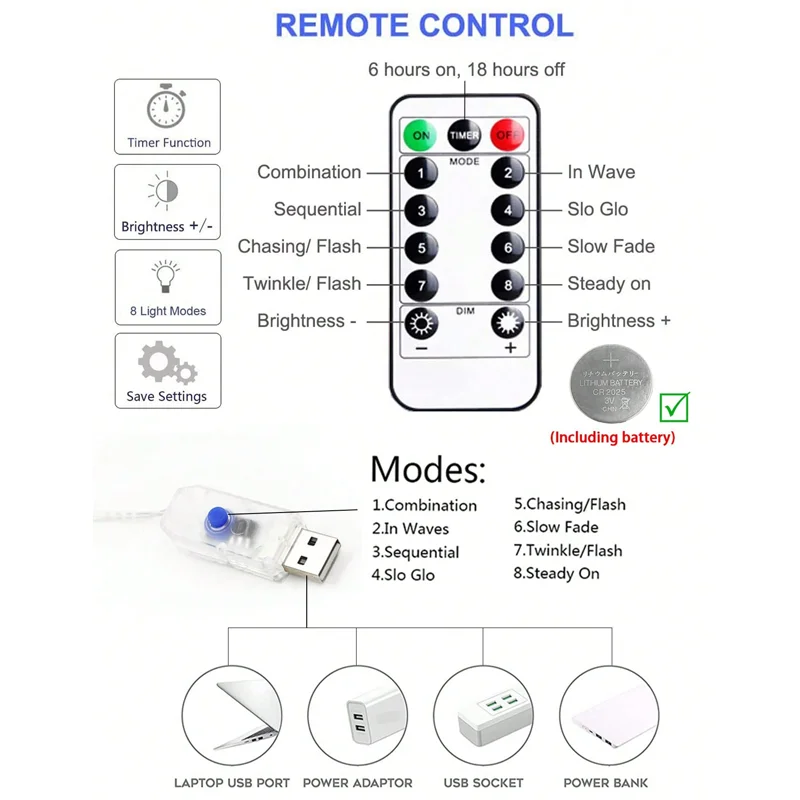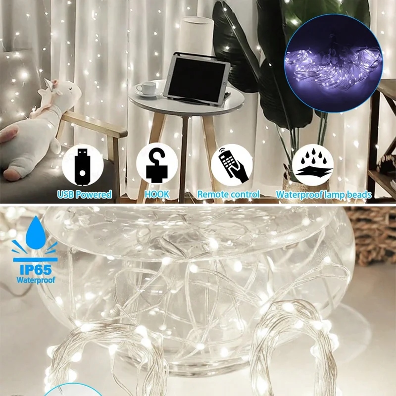 3/9M USB LED Curtain 8Modes Remote Control String Lights Holiday Wedding Fairy Garland Lights For Bedroom Living Room Decor