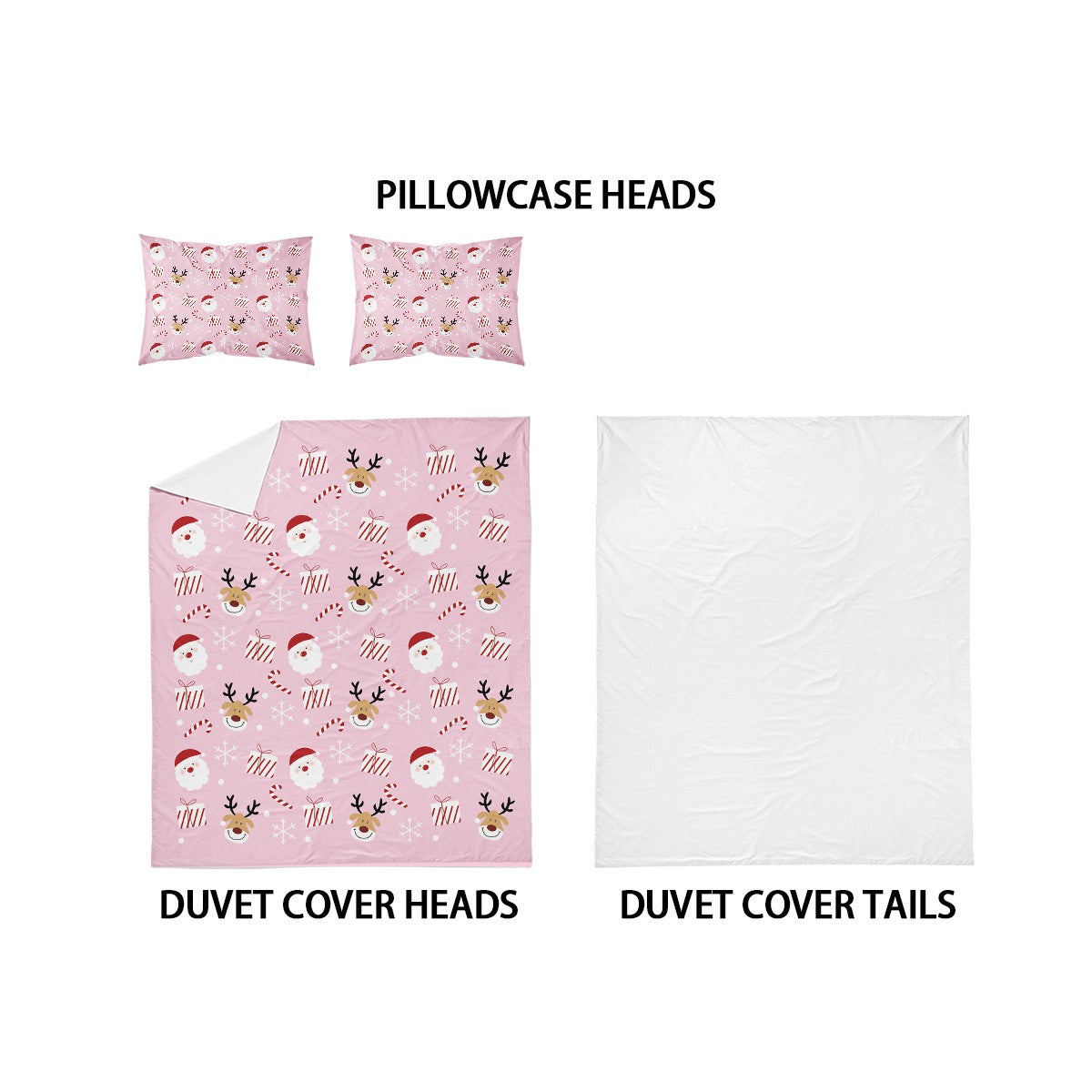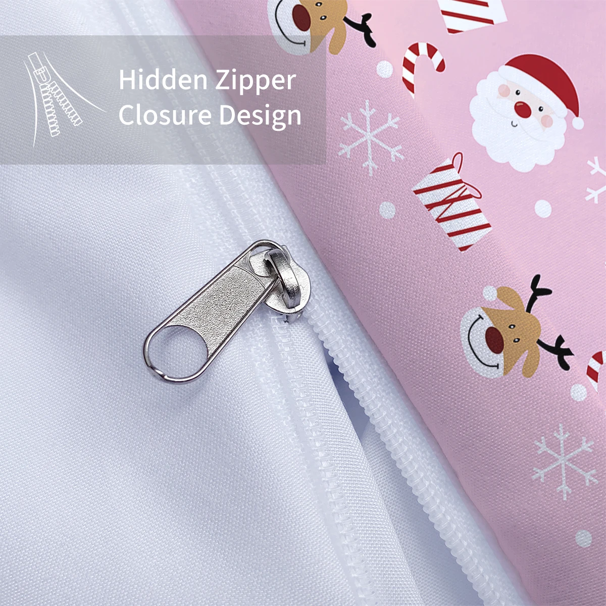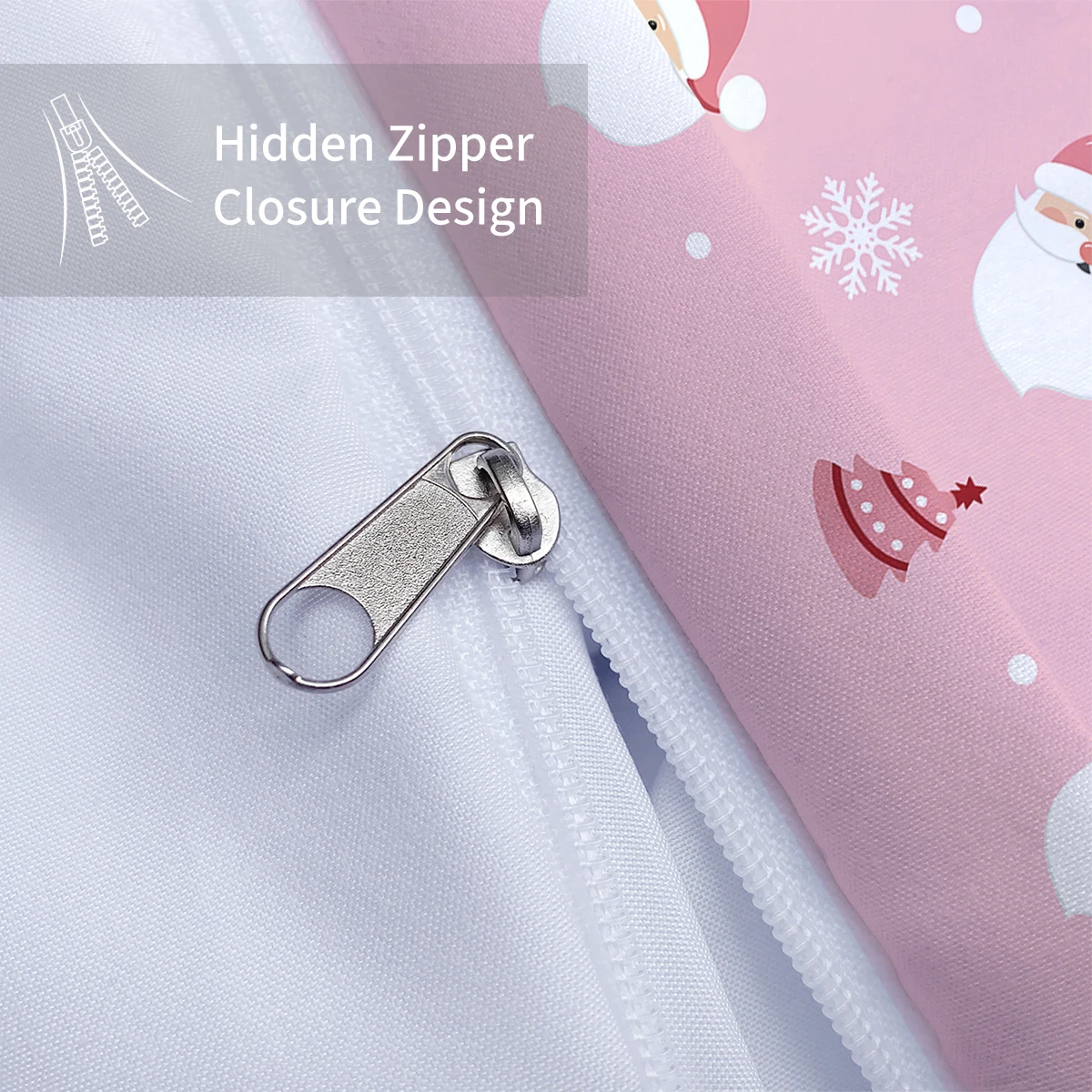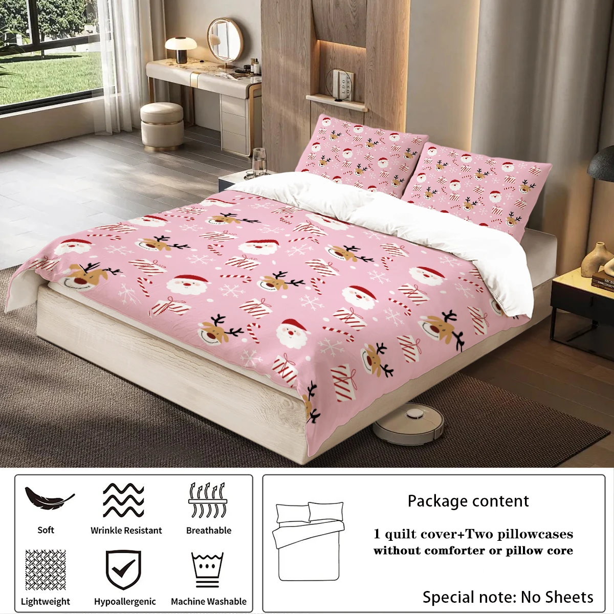 3-piece Christmas themed pink Santa Claus print (1 duvet cover+2 pillowcases, no core) soft and comfortable bedding set