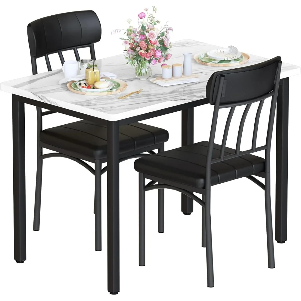 • ?Table/ Chairs Dimensions?: Table Size: 35.4" L x 23.6" W x 29.9" H. Chairs Size: 15.35" L x 15.75" W x 36.61" H. The kitchen table and chairs great for small kitchen, dining room, studio apartment, condo, nook. Perfect for 2 people