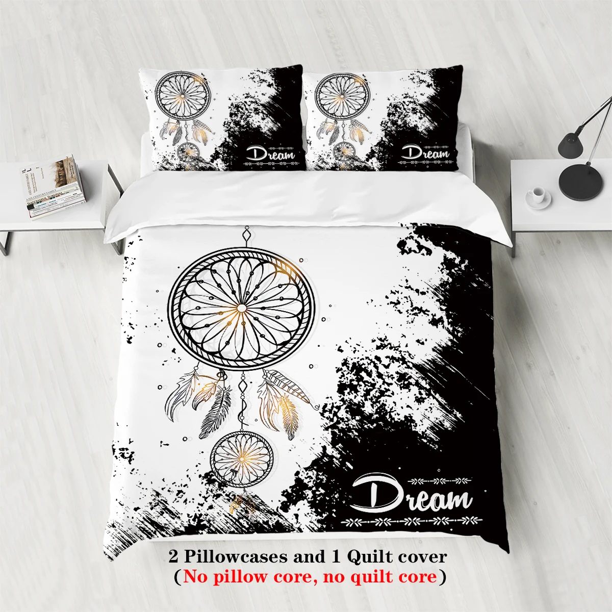 3-piece set, black and white dream catcher pattern printed bedding set, queen, king, double bed, for bedroom, guestroom, hotel
