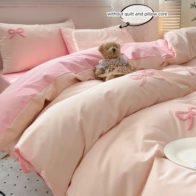 3 Piece Sheet Set pink bowknot embroidery Quilt Set ? comfortable embroidery Bedding Set Bedspread for All Season