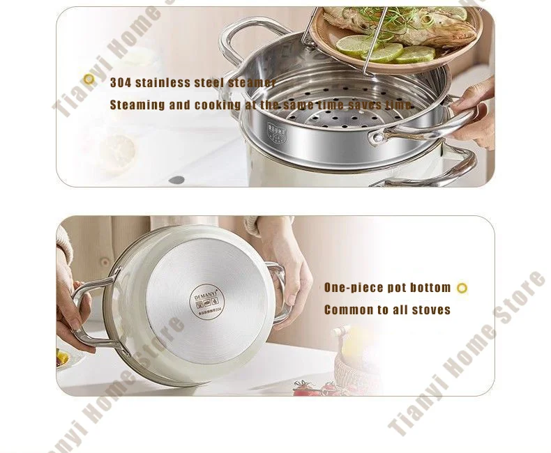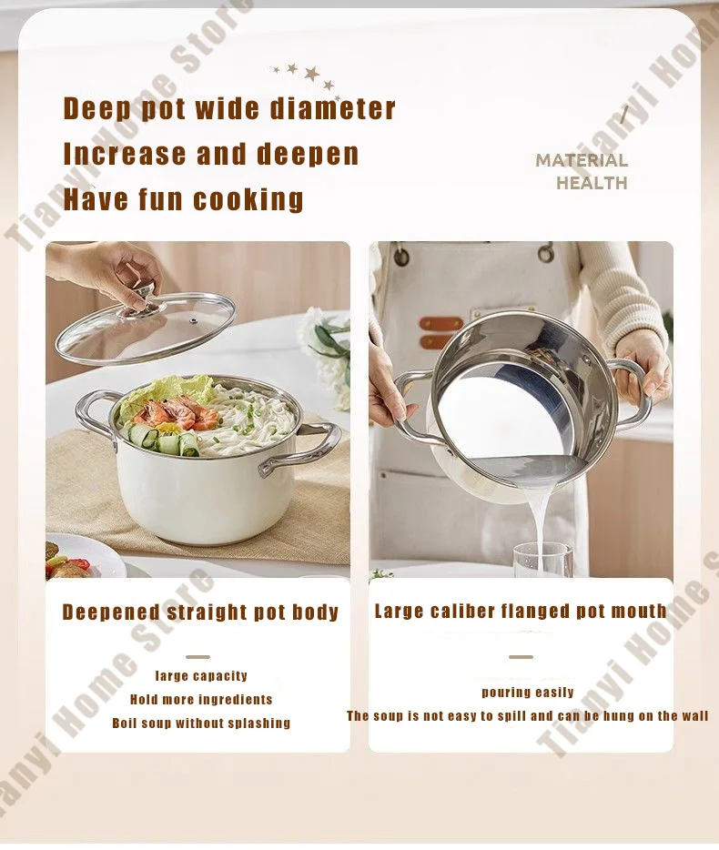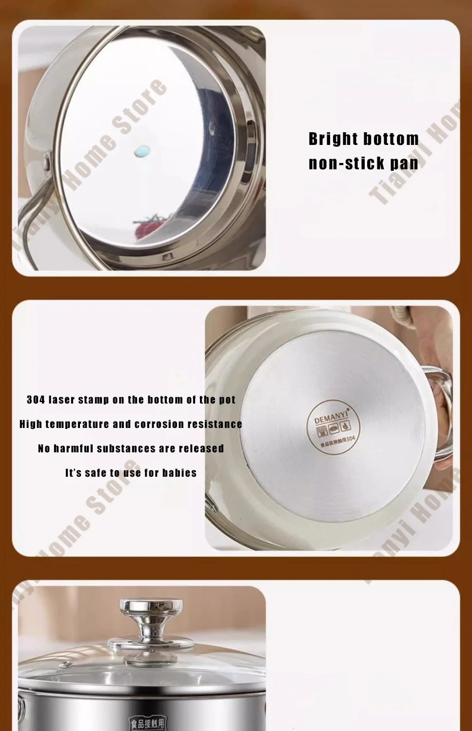 304 Stainless Steel Soup Pot Non-stick Pan with lid Home Hot Pot Induction Cooker Gas Stove Universal Food Supplement Milk Pot