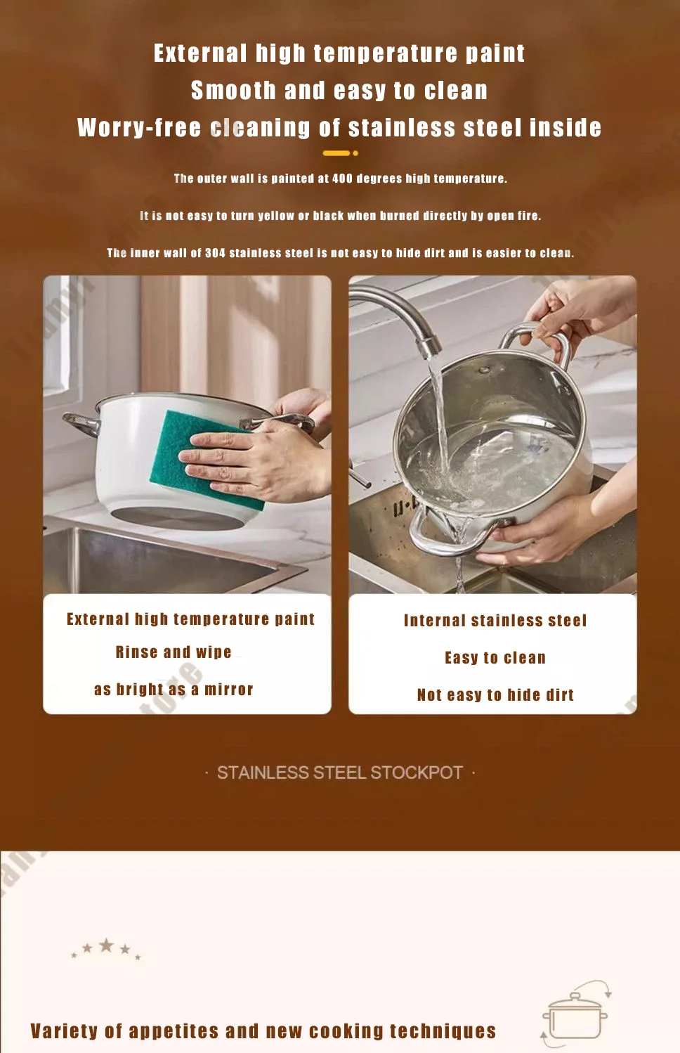 3. High-temperature paint on the outside, stainless steel on the inside, 400-degree high-temperature process, the pot body will not fade, is wear-resistant and durable
