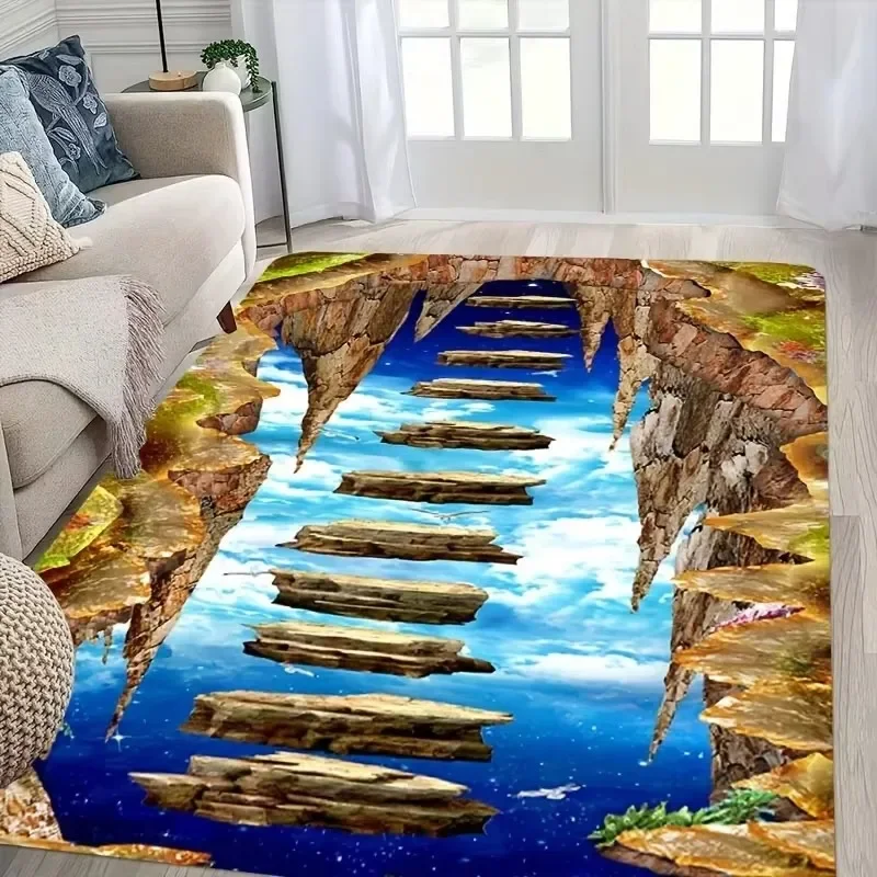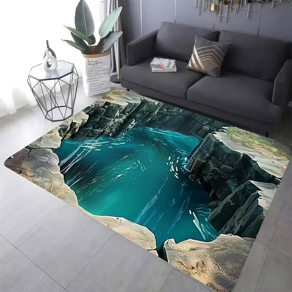 3D Desert Crack Water Fire Design Rug Non-Slip Machine Washable Carpet Fashion Bedroom Living Room Beach Style Floor Mat