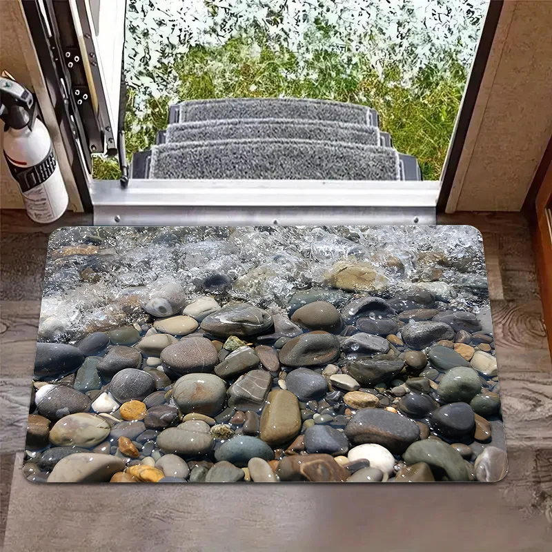 3D River Rock Doormat - Realistic Pebble and Water Design for a Nature-Inspired Home Entrance, Creating a Calming Atmosphere