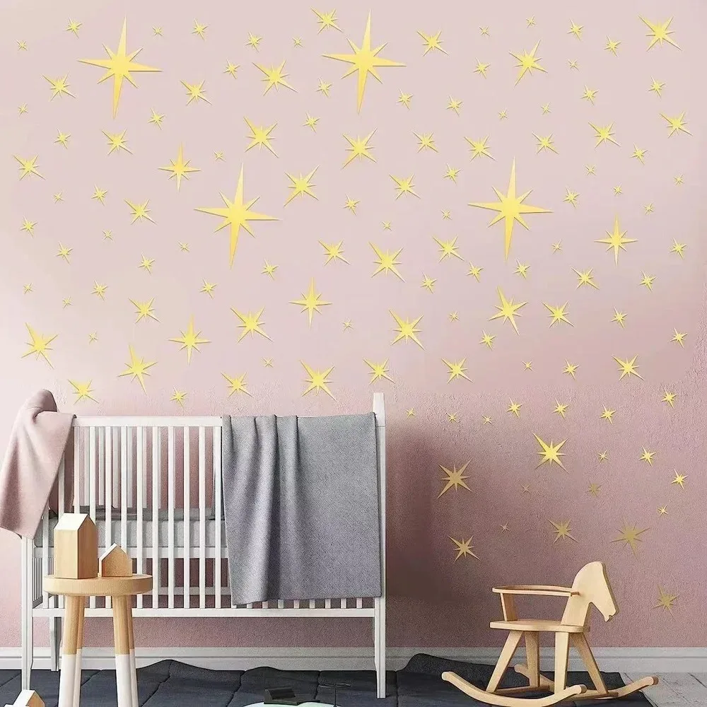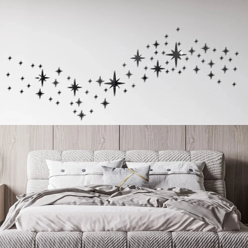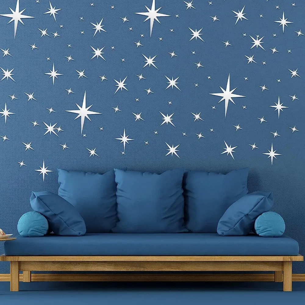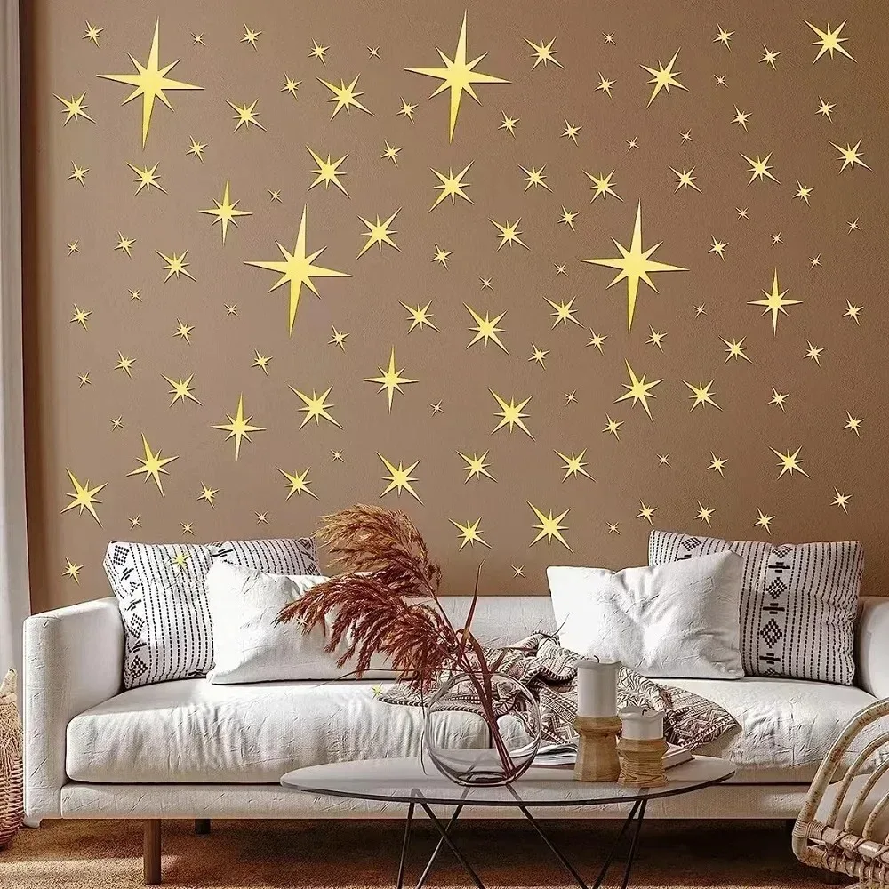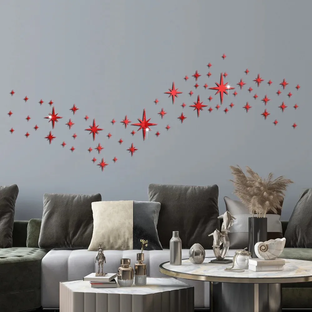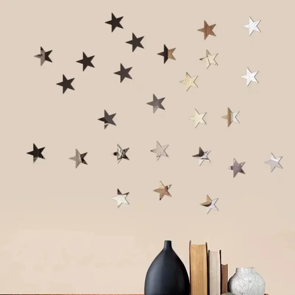 3D Star Mirror Wall Sticker Large Medium and Small Combination Acrylic Mirror Wall Sticker Home Living Room Wall Decorations