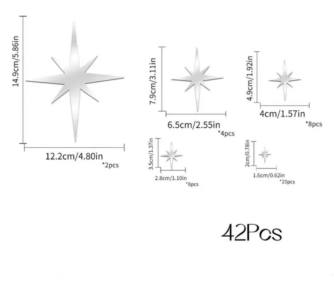 3D Star Mirror Wall Sticker Large Medium and Small Combination Acrylic Mirror