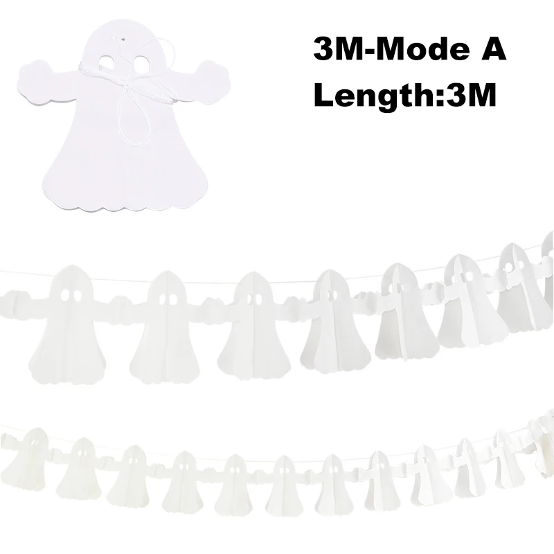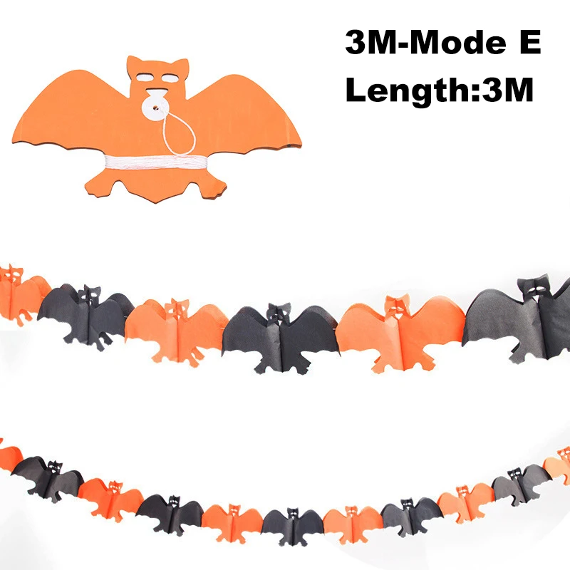 3Meter Halloween Hanging Garland Bunting Bat Pumpkin Ghosts Spider Paper Banner Halloween Party Decorations Horror Props
