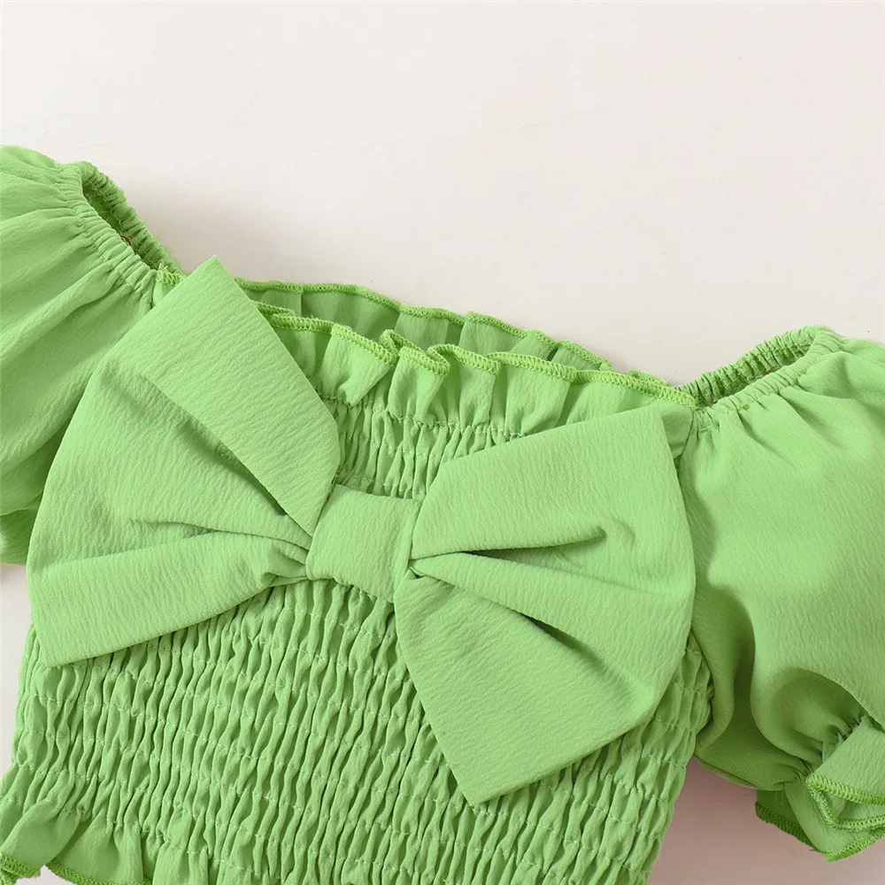 3pcs Clothing Set 6-24 Months Baby Girl Summer Suit Puff Sleeve Top with Bow+Flowers Shorts Toddler Girl Pastoral Style Clothes