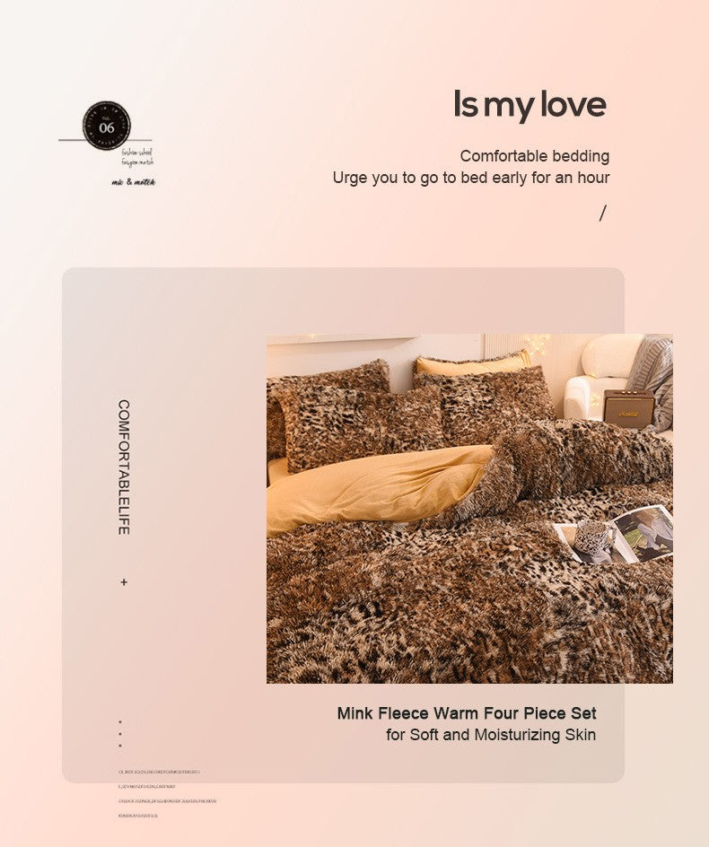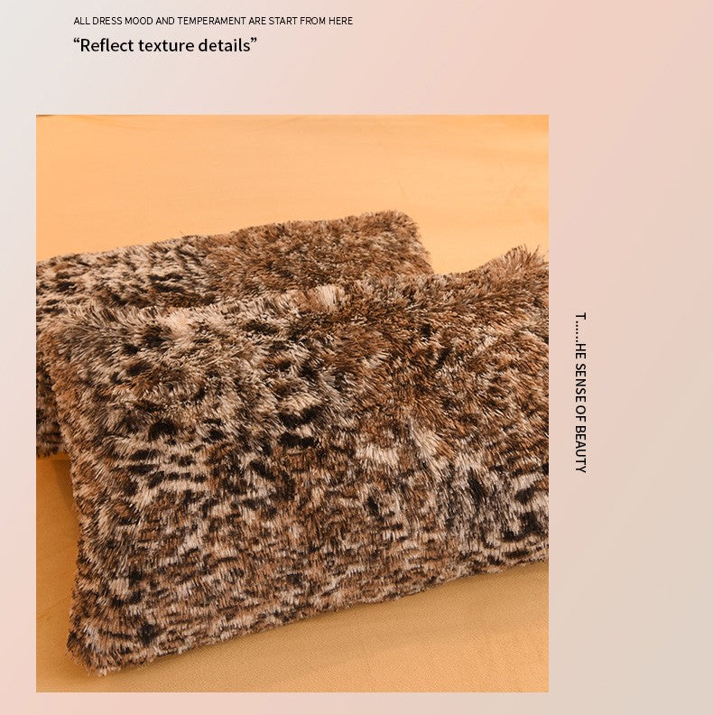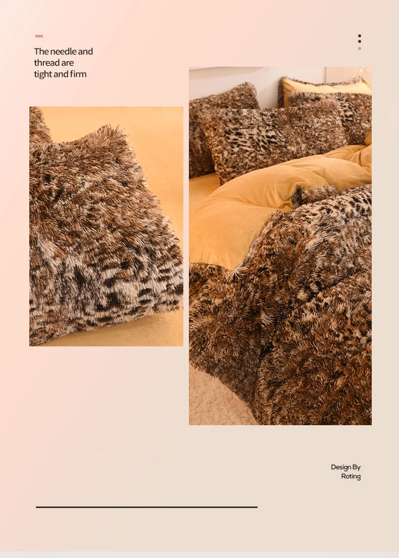 3pcs Luxurious Leopard Print Faux Fur Plush Duvet Cover Set - Ultra-Soft, Warm, and Fluffy Shaggy Design with Zipper Closure - I