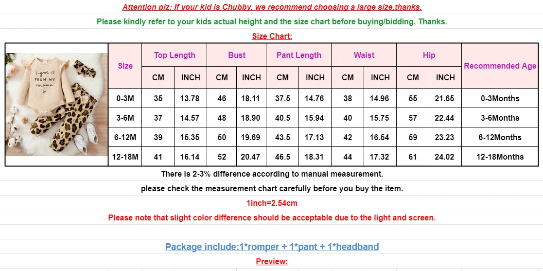 3PCS Newborn Baby Girl Clothes Set Long Sleeved Top+Leopard Pants+Headband Infant Spring Outfits for Toddler Girl 0-18 Months