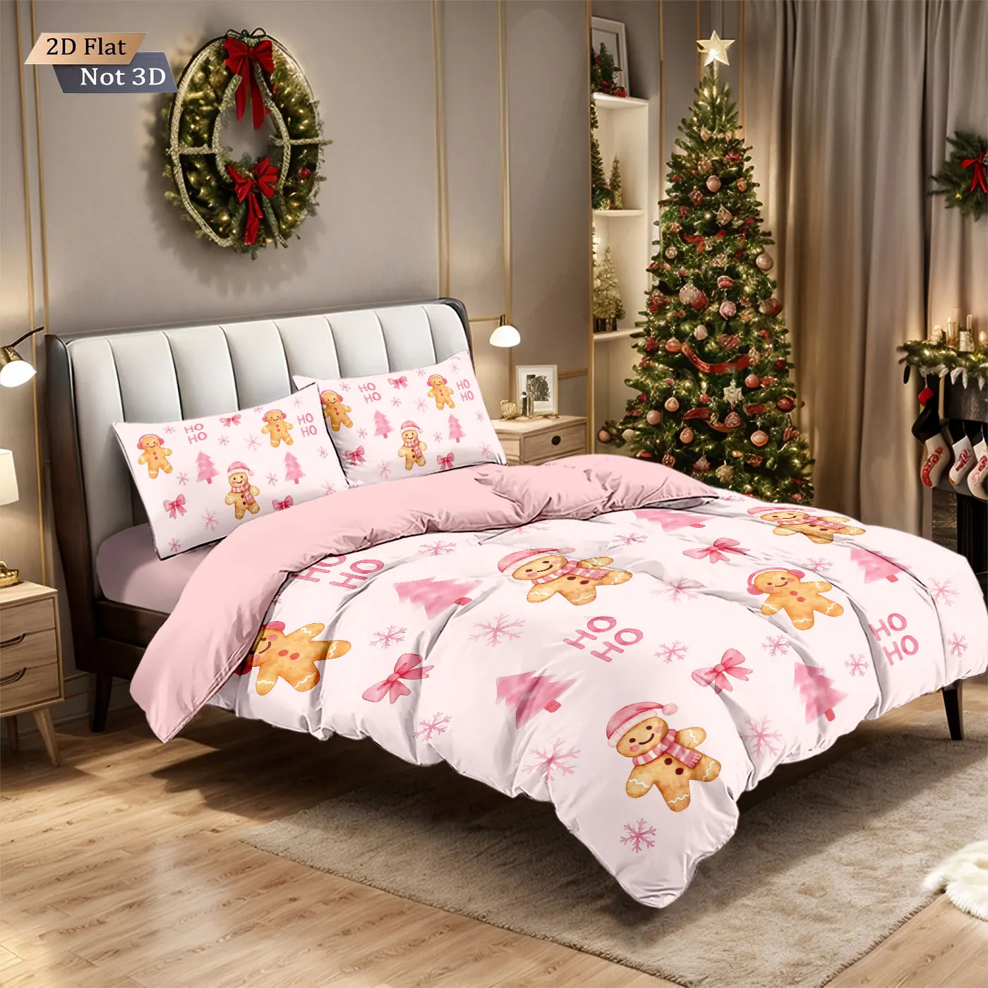 3pcs pink Merry Christmas gingerbread printed coreless bedding set multi size bedroom bedding holiday decoration comfortable