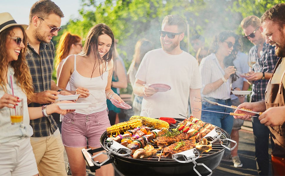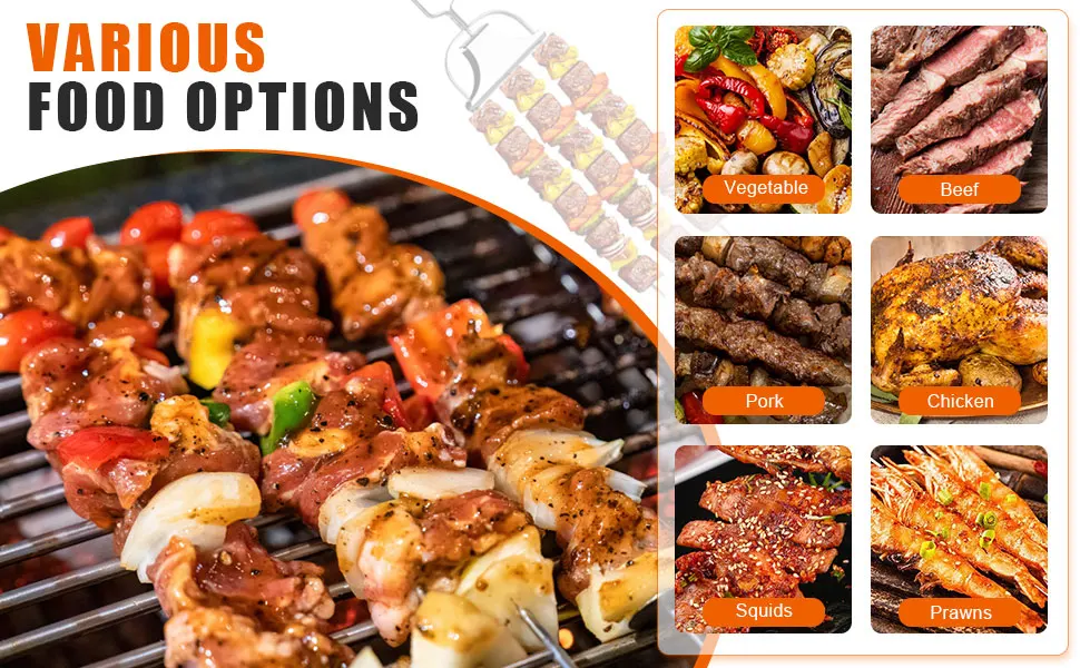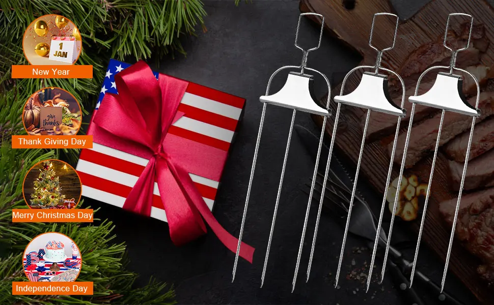 3Pcs Skewer Sticks Kabob Sticks for Grilling 14'' 3 Way Grill Skewers Metal Barbecue Skewers with Push Rod Sliders BBQ Accessory