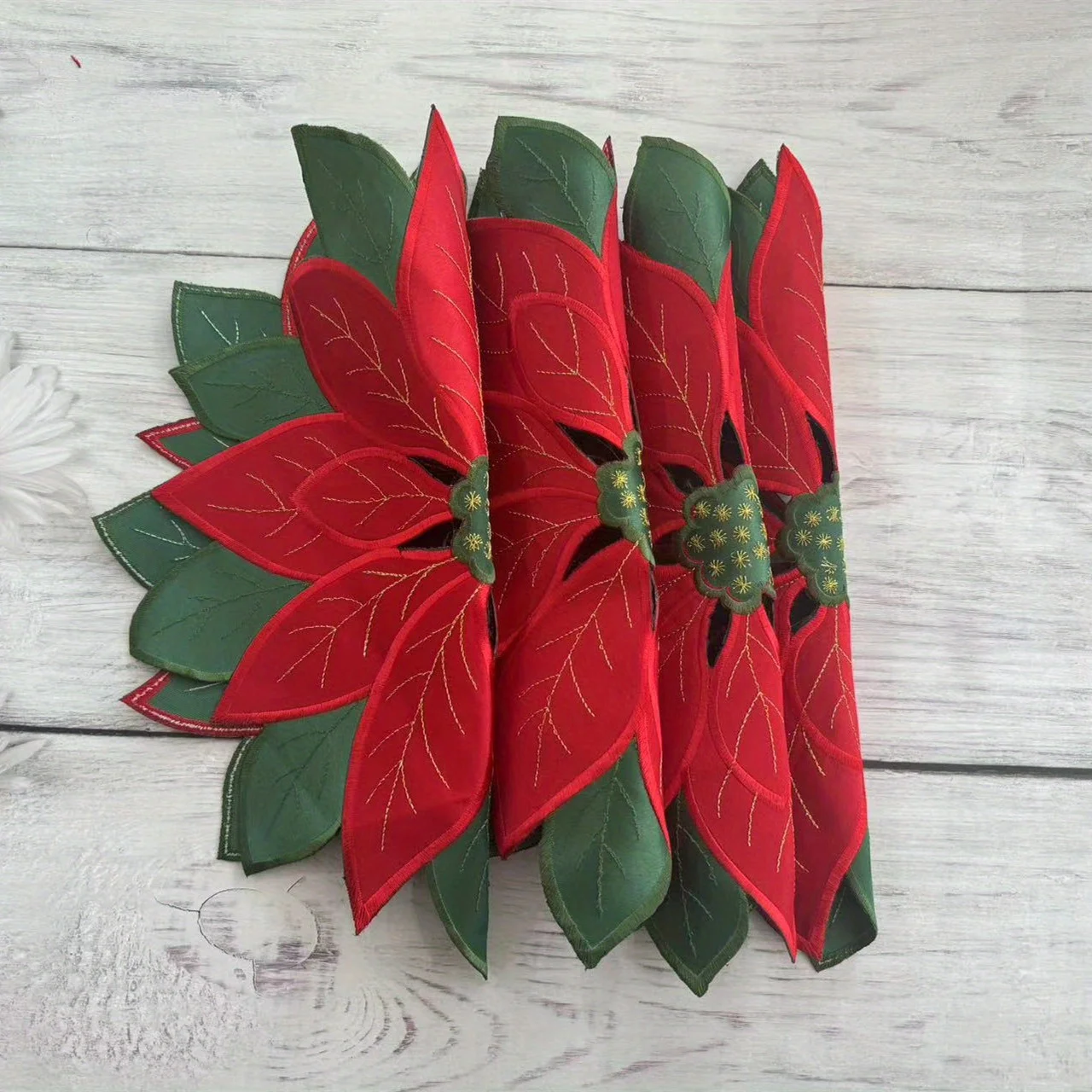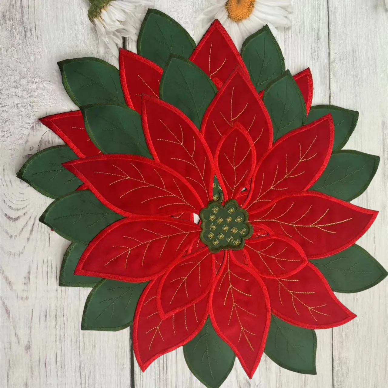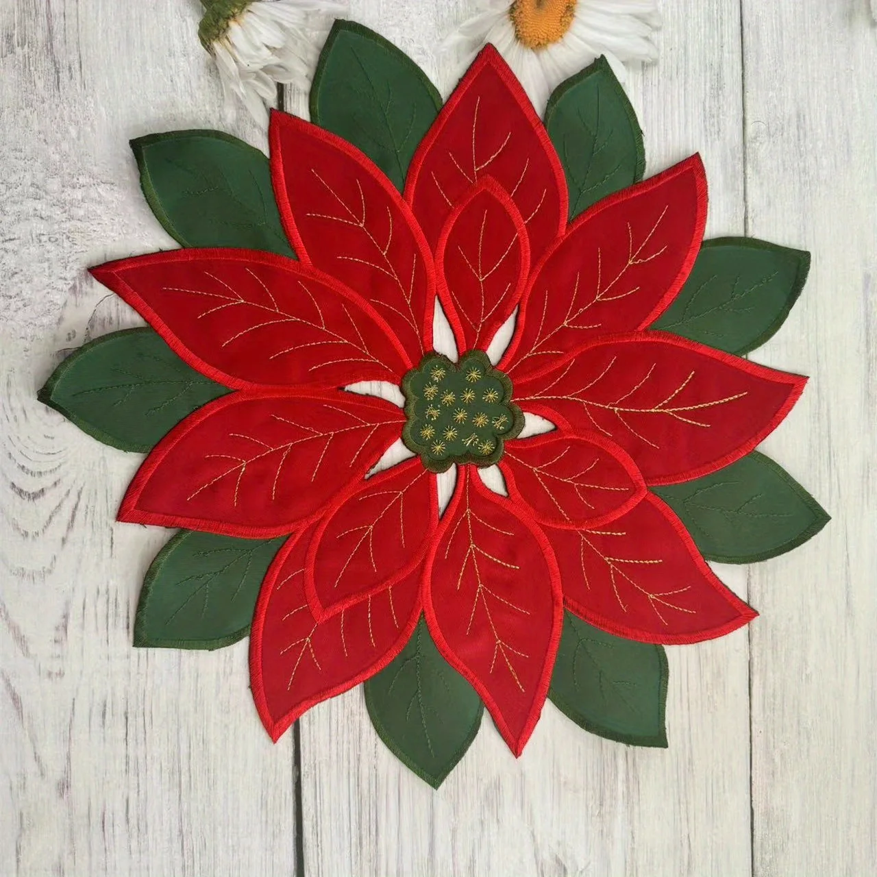 4/2PCS 35X35CM Christmas Embroidered Table Flag Tablecloth European Embroidered Placemat Modern Nordic Circular Cover Tablecloth