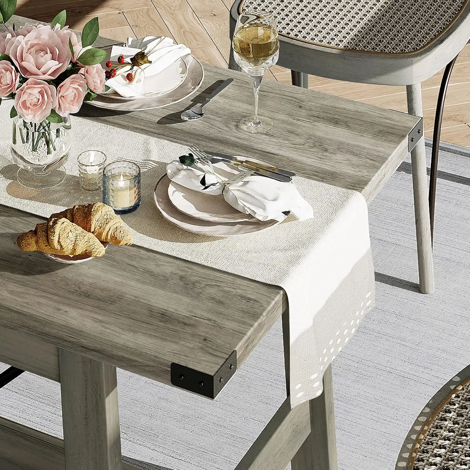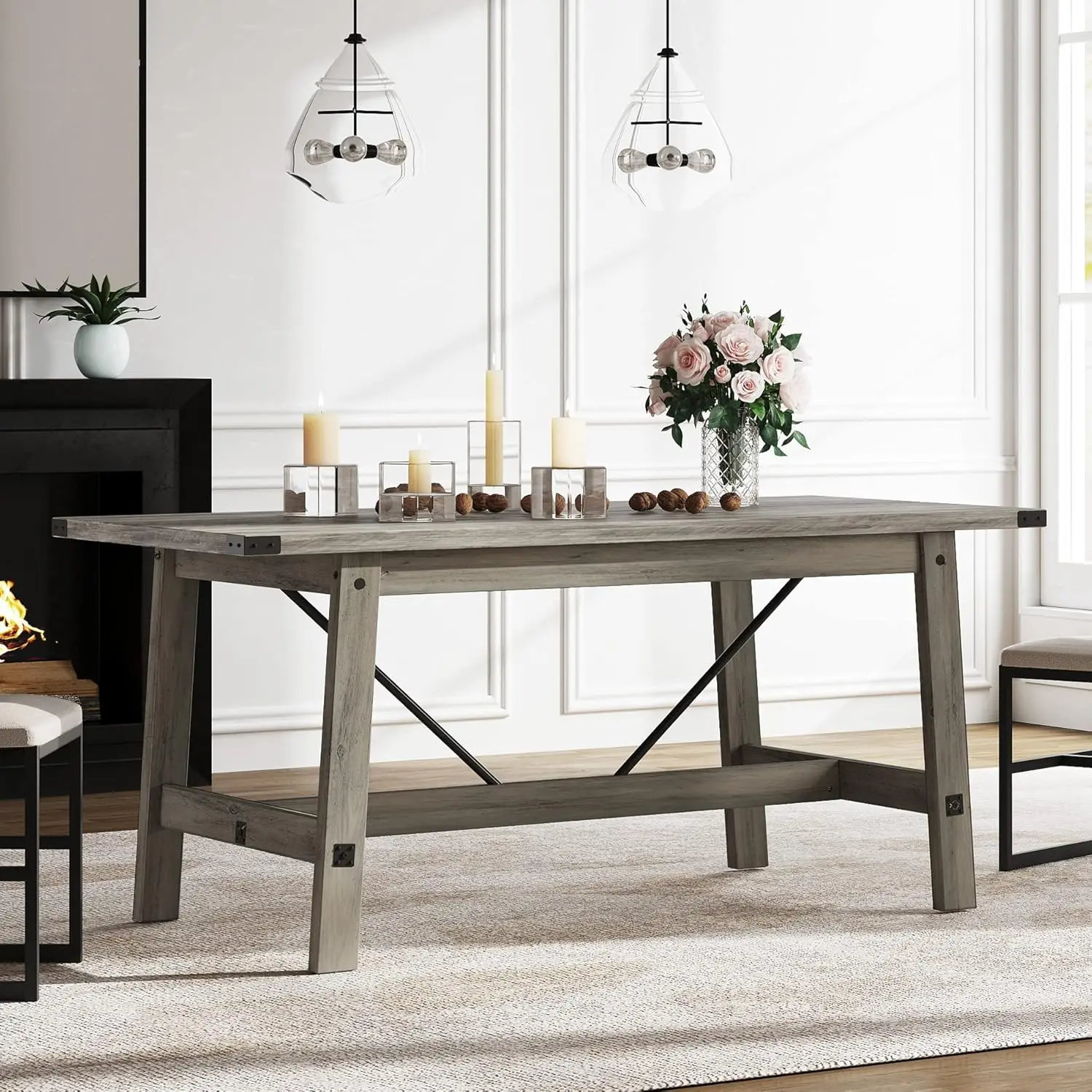 - Farmhouse Style Design: This table combines a charming farmhouse appearance with a practical design, whether placed in the living room, dining room or kitchen, the farmhouse dining table can perfectly blend and enhance the style of space