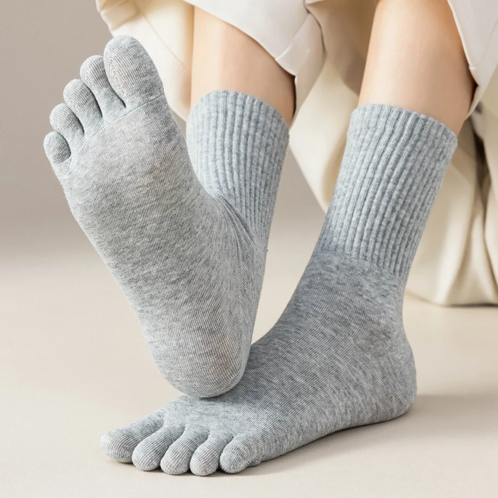 4 Pairs Women Toe Socks Five Finger Socks High Quality Cotton Autumn Spring Middle Tube Sports Socks with Separate Fingers