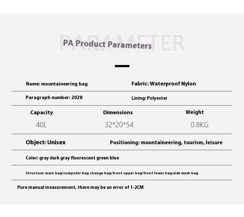 40L Hiking Backpack Camping Outdoor Climbing Bag Travel Luggage Computer Bag for Women Men Large Capacity Sports Backpacks