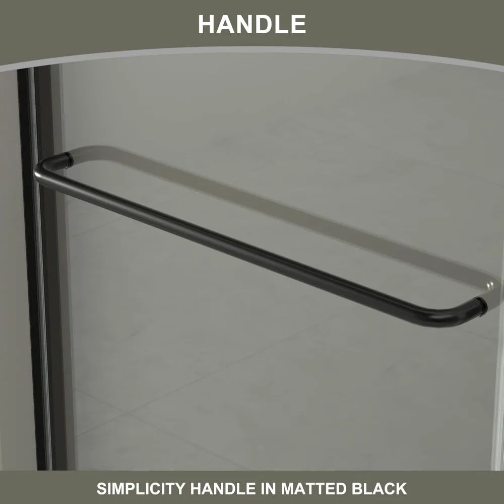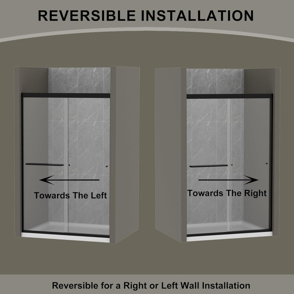 44-48" W x 72" H Semi-Frameless Sliding Shower Door, Glass Shower Door with 1/4'' (6mm) Clear SGCC Tempered Glass, Matte Black