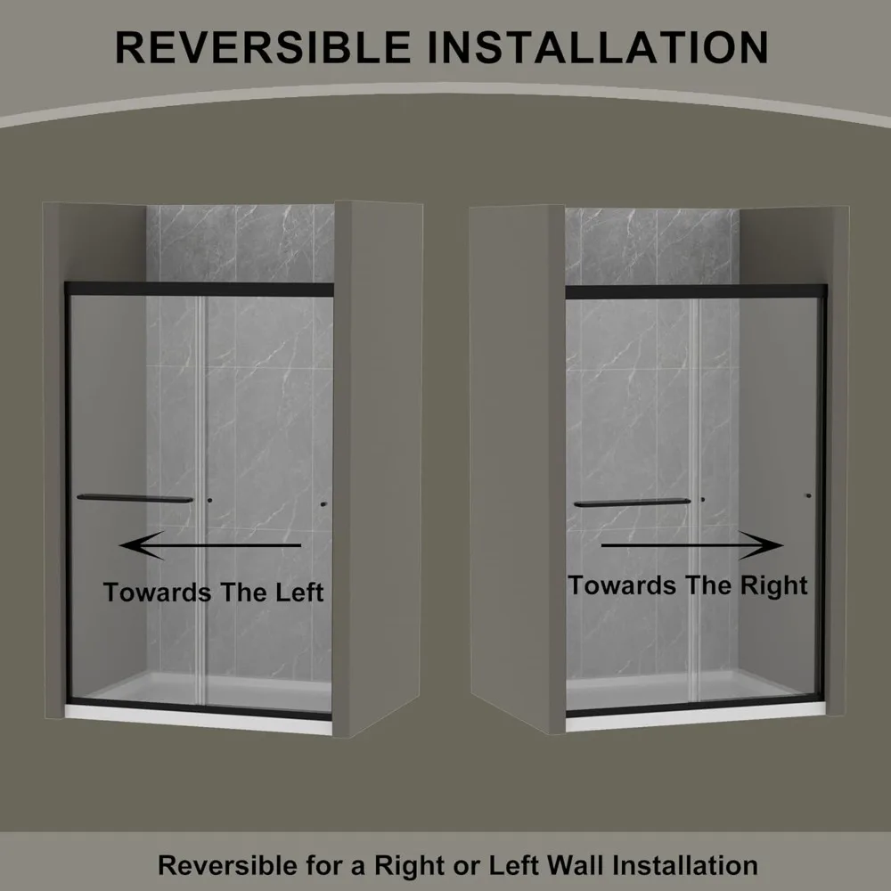 - ?Easy Assembly? The sliding shower door comes with detailed instructions and all necessary mounting hardware for a simple and hassle-free installation,The shower door allow up to 3/8 " of adjustability to align with out-of-plumb walls, canceling the effect of wall shift that may occur over time.