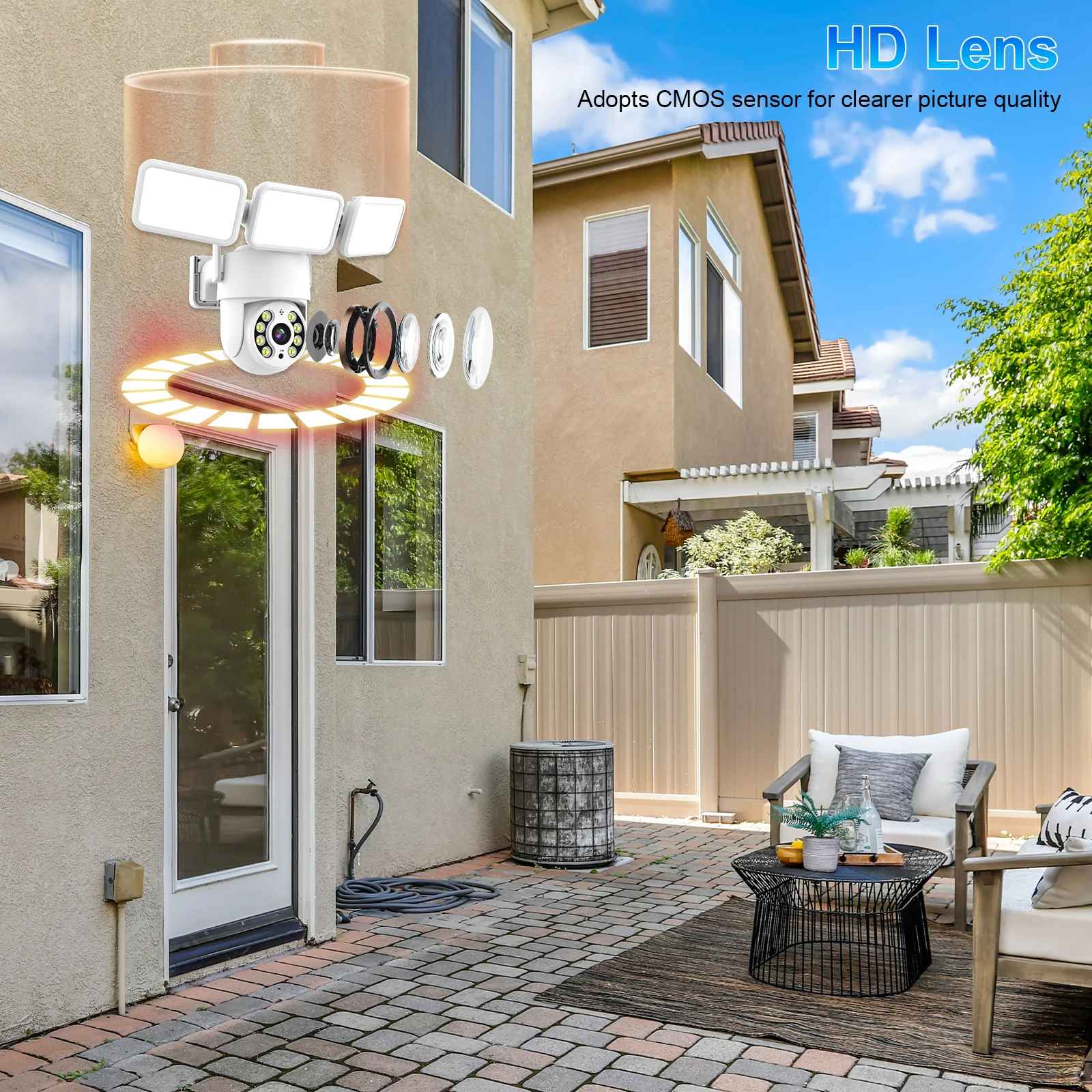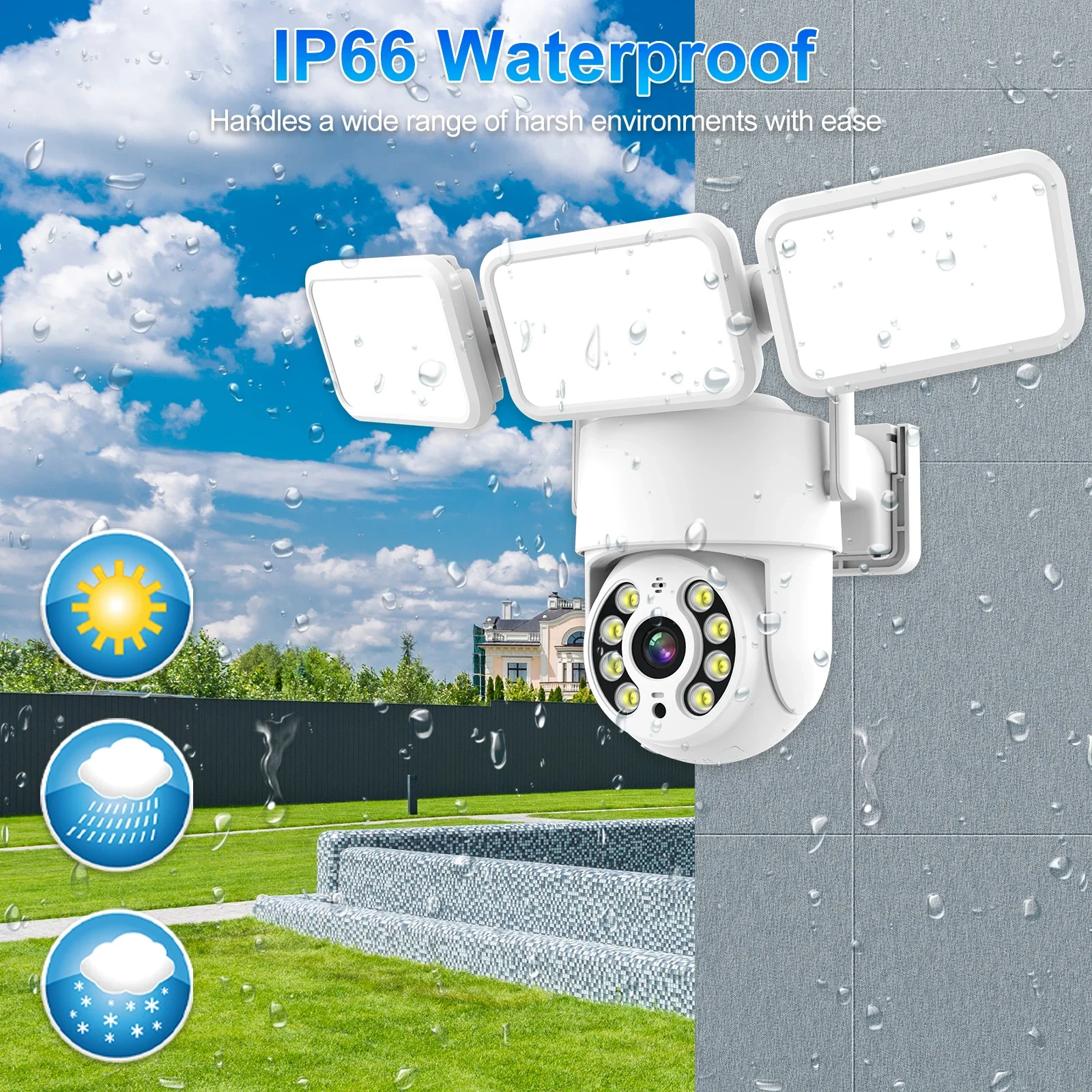 4MP Floodlight Camera Wifi PTZ Outdoor AI Humanoid Tracking Night Vision Cameras CCTV Smart Home Security Protection Icsee App
