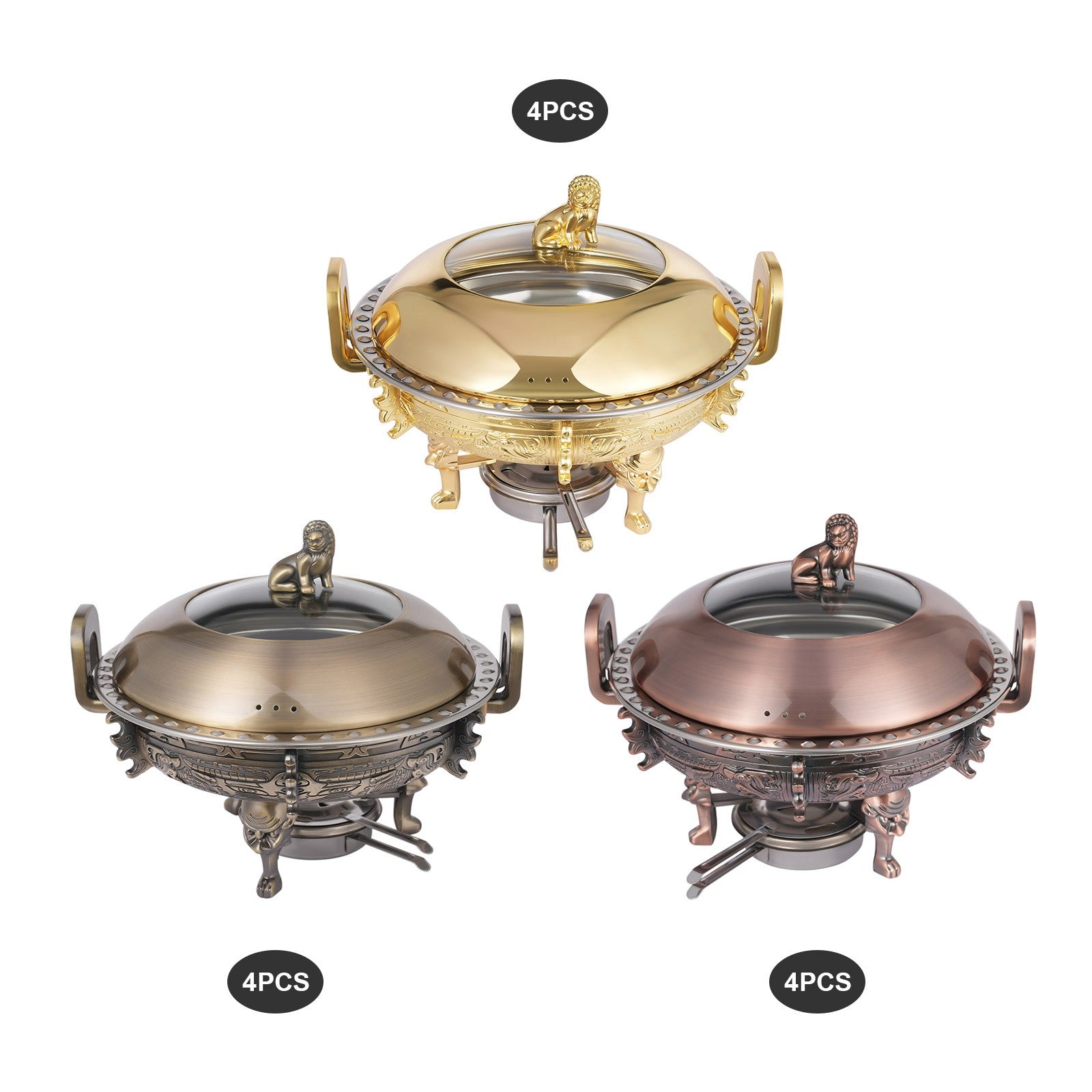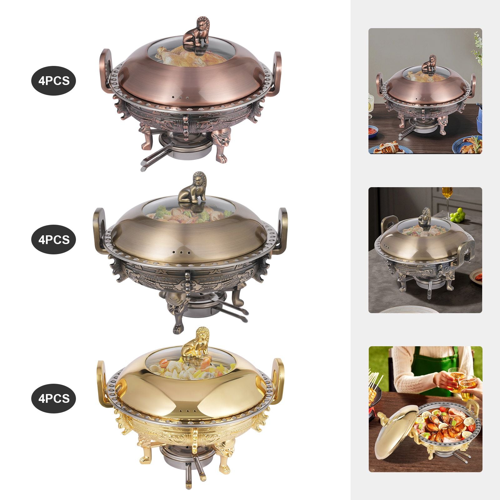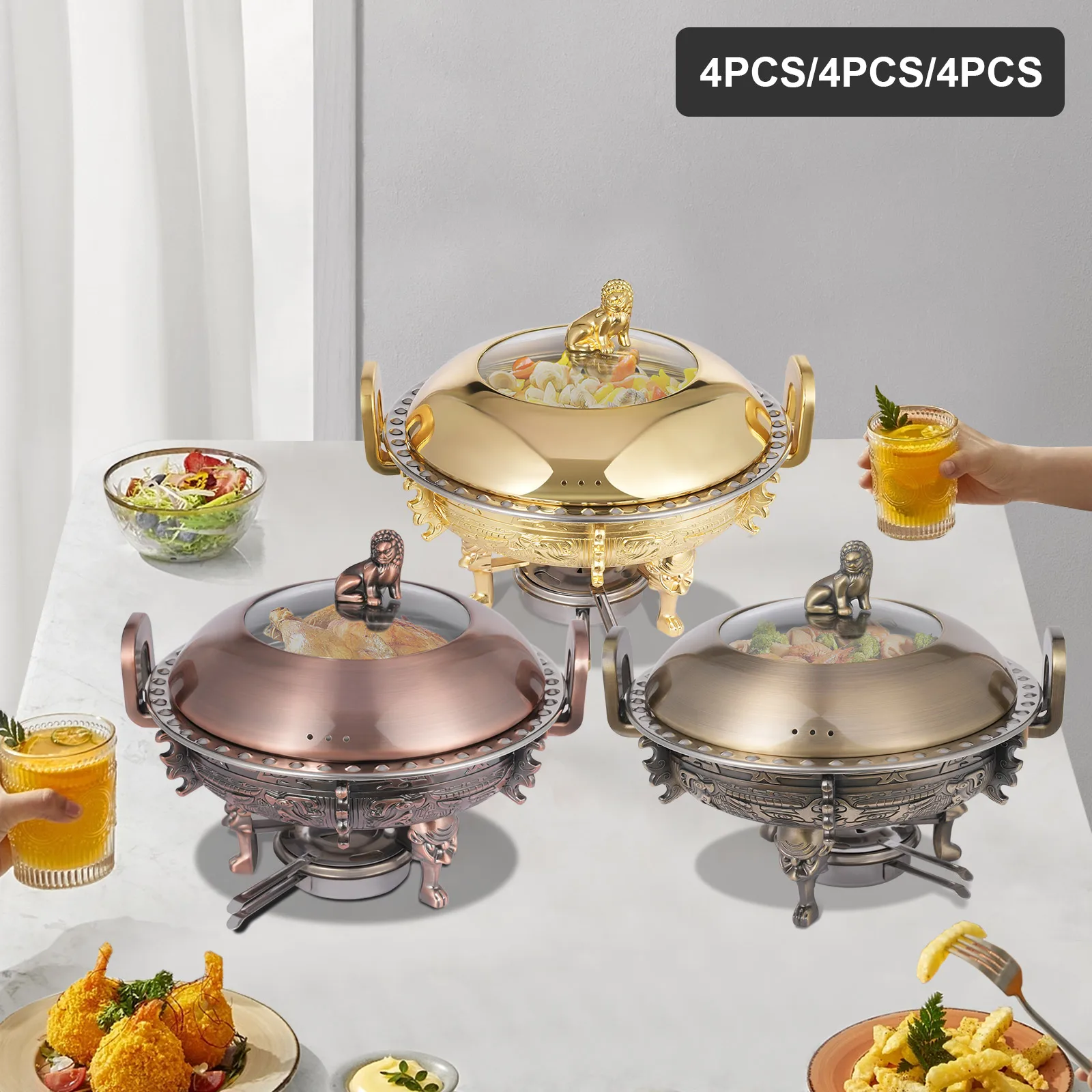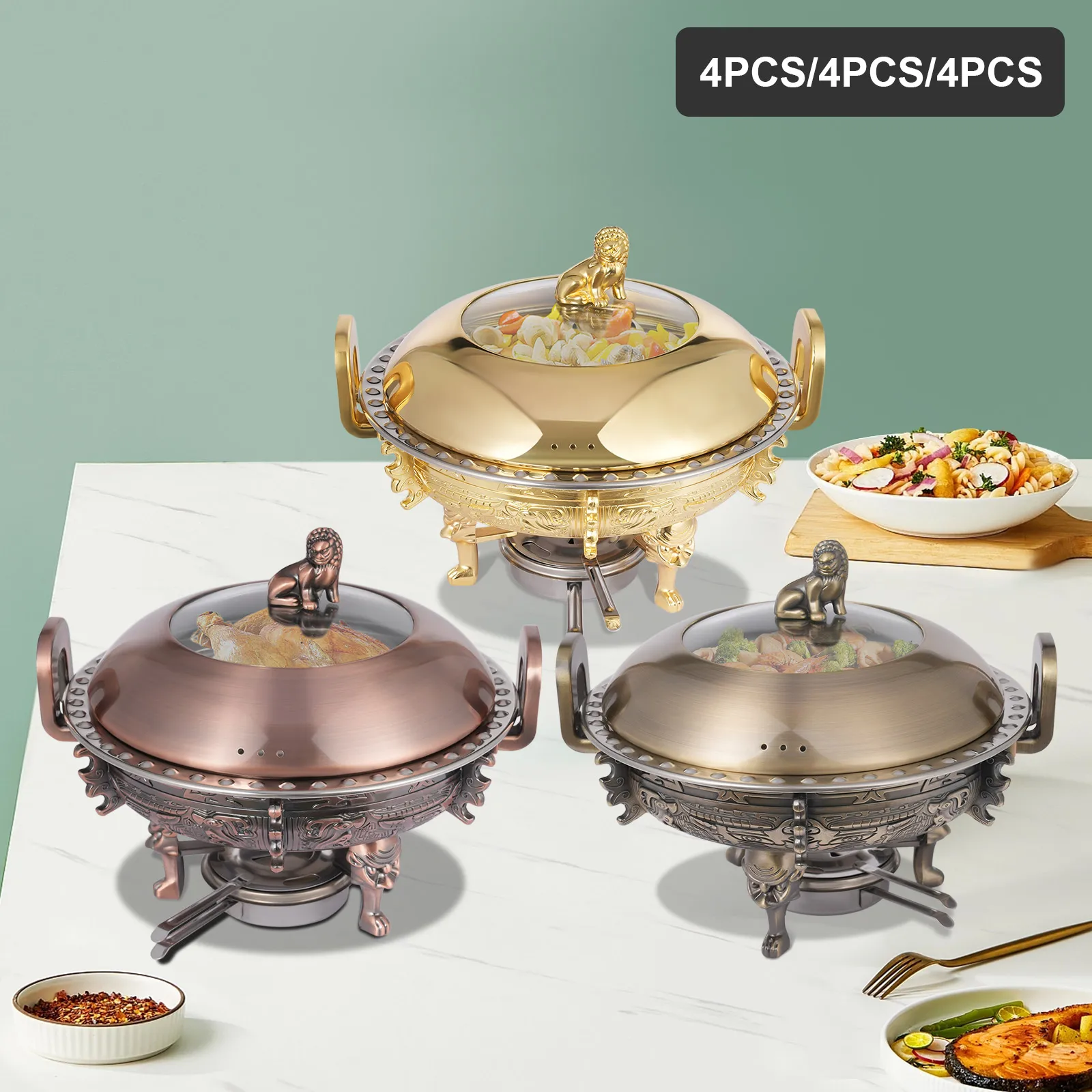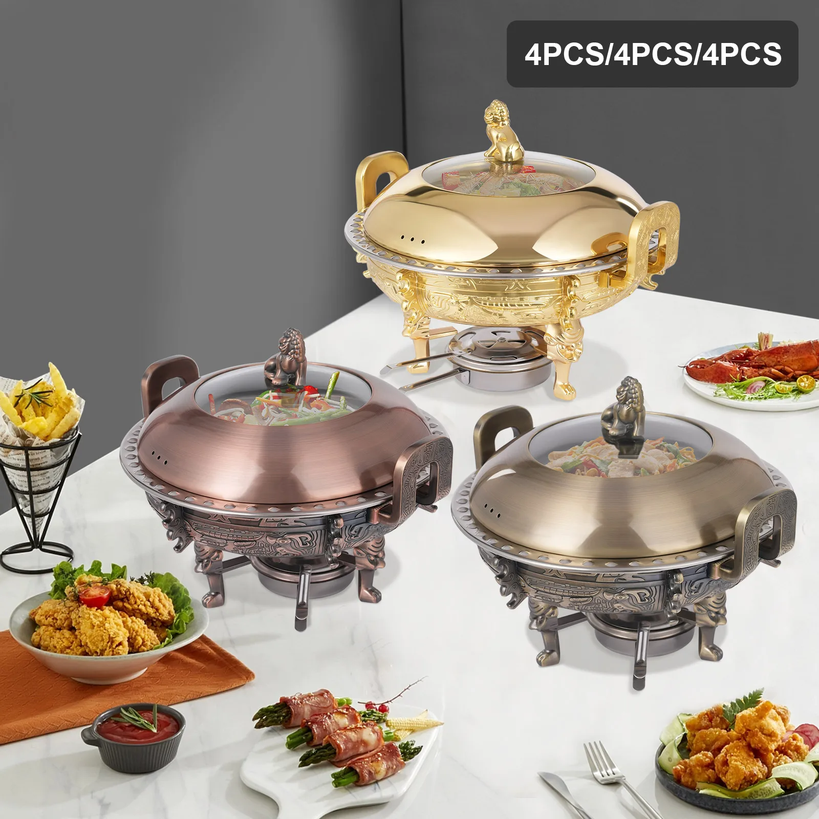 4PCS Chafing Dishes, Classical Round Chafing Buffet Set, Stainless Steel Chafers and Buffet Warmers Sets for Gatherings, Events